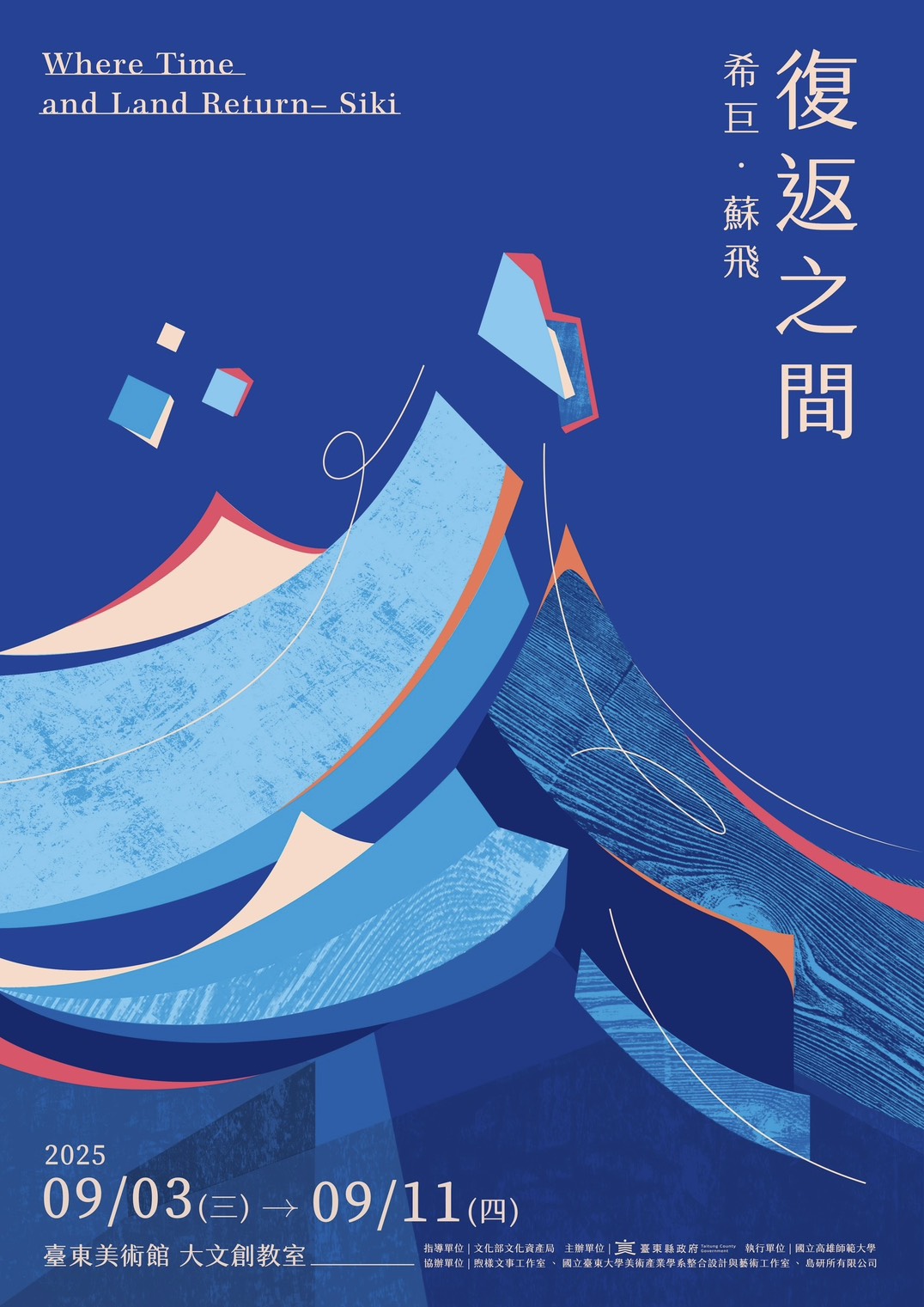 「復返之間:希巨.蘇飛」藝術展以「時間、空間與文化的三重追尋」為核心,展出作品涵蓋「神話傳說」與「臺籍老兵」兩大主題,分別映照阿美族傳統文化的精神內涵,以及藝術家對部落社會的深切關懷。其作品不僅呈現當代藝術在傳統脈絡中的延續與轉化,也回應了藝術作為文化省思與社會關懷的重要角色。