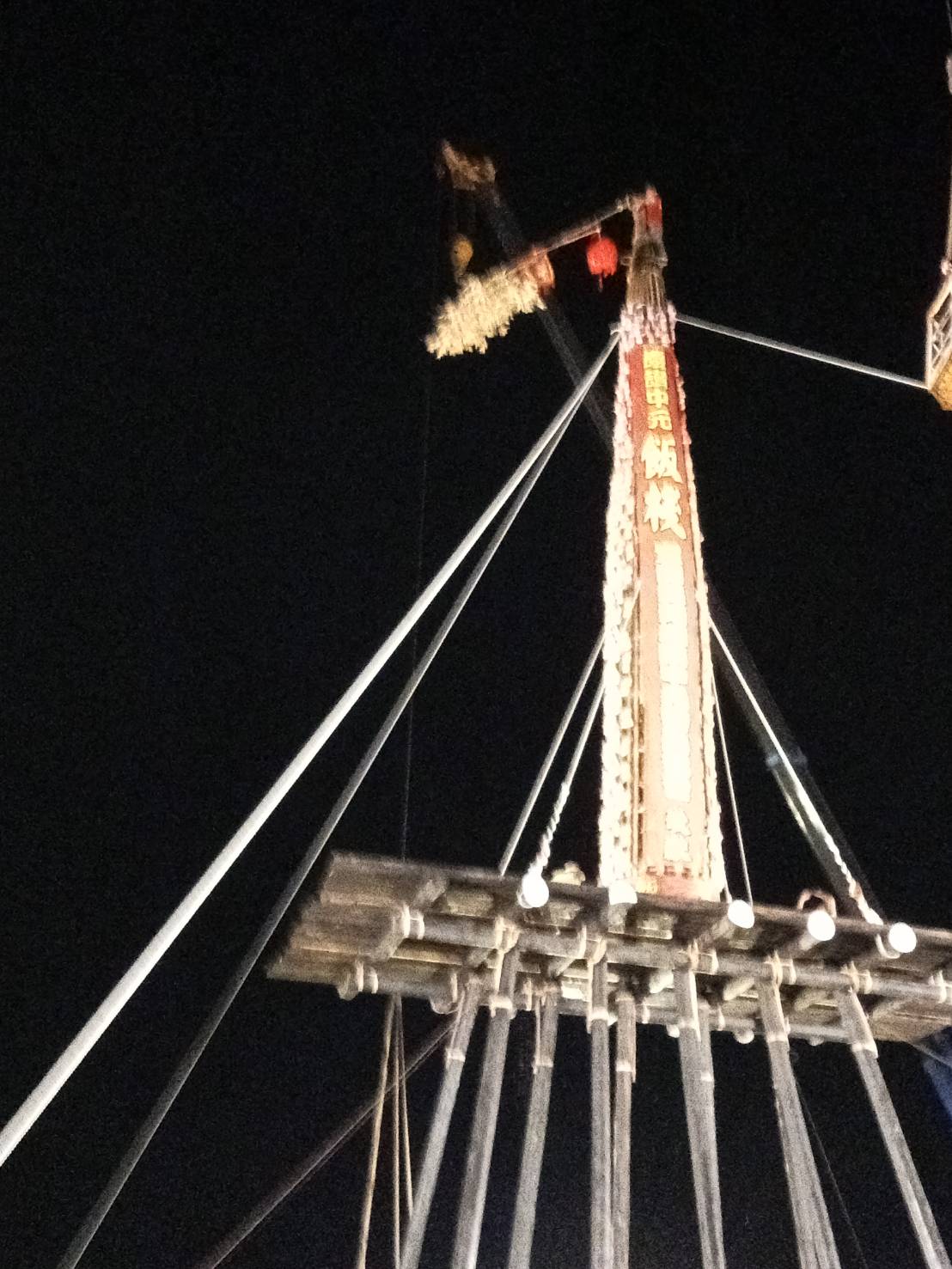 今年頭城「搶飯棚個人技藝競賽」有31人報名參賽,「飯棚」平台以10支孤柱搭建,高24台尺;平台上惟一一串孤串高40台尺。