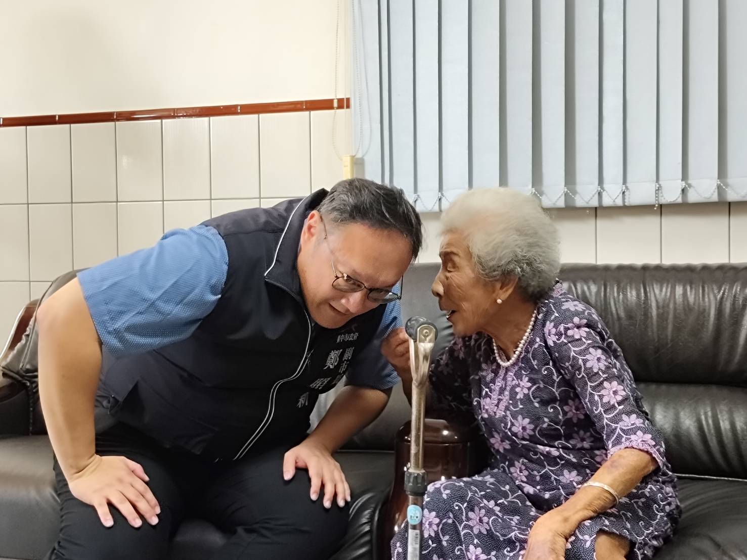 賴總統訪台中百歲人瑞 盧市長陪同話家常、致贈萬元敬老禮金