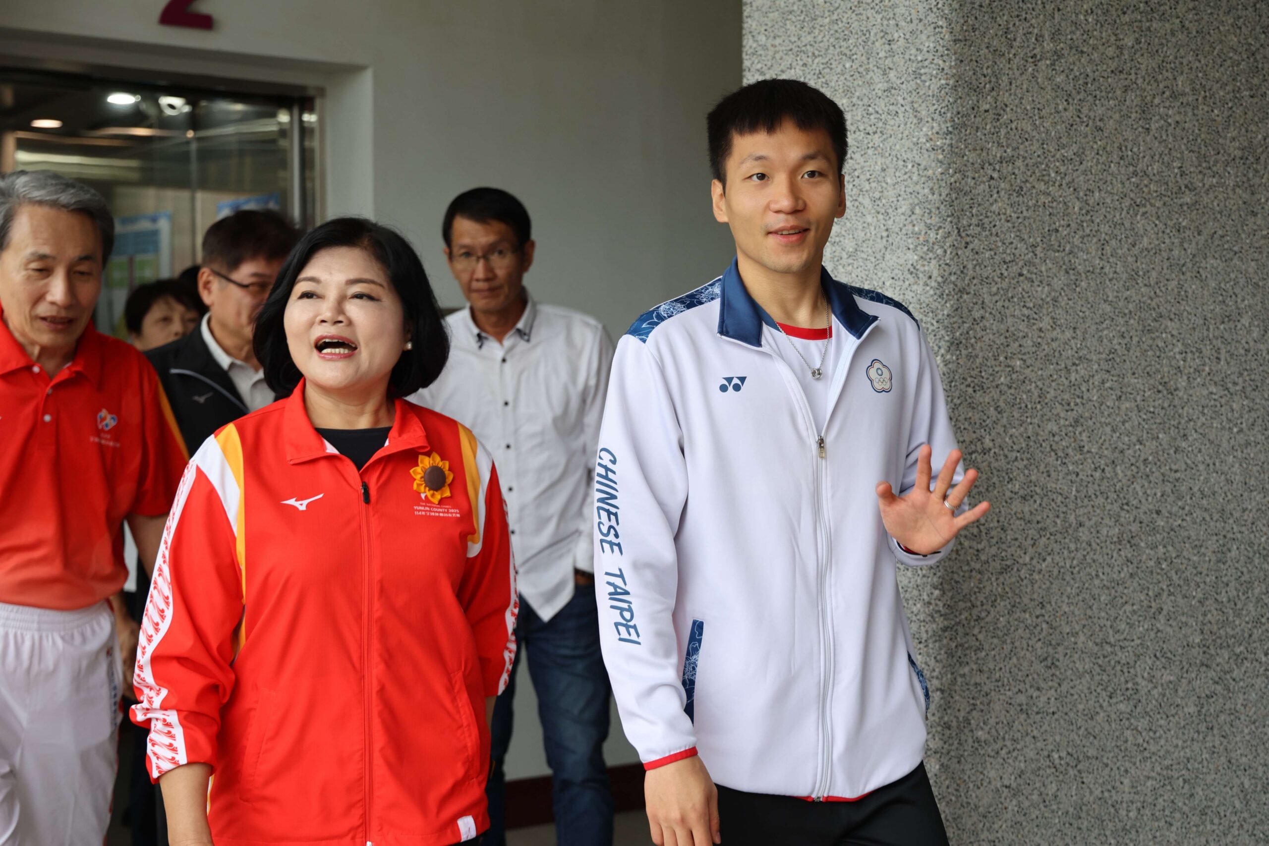 114年全國運動會昨晚於雲林縣立田徑場盛大開幕,雲林縣長張麗善今(19)日上午率縣府教育處長邱孝文、全運會六部菁英團隊陪同運動部長李洋前往團本部慰勞各縣市代表團。