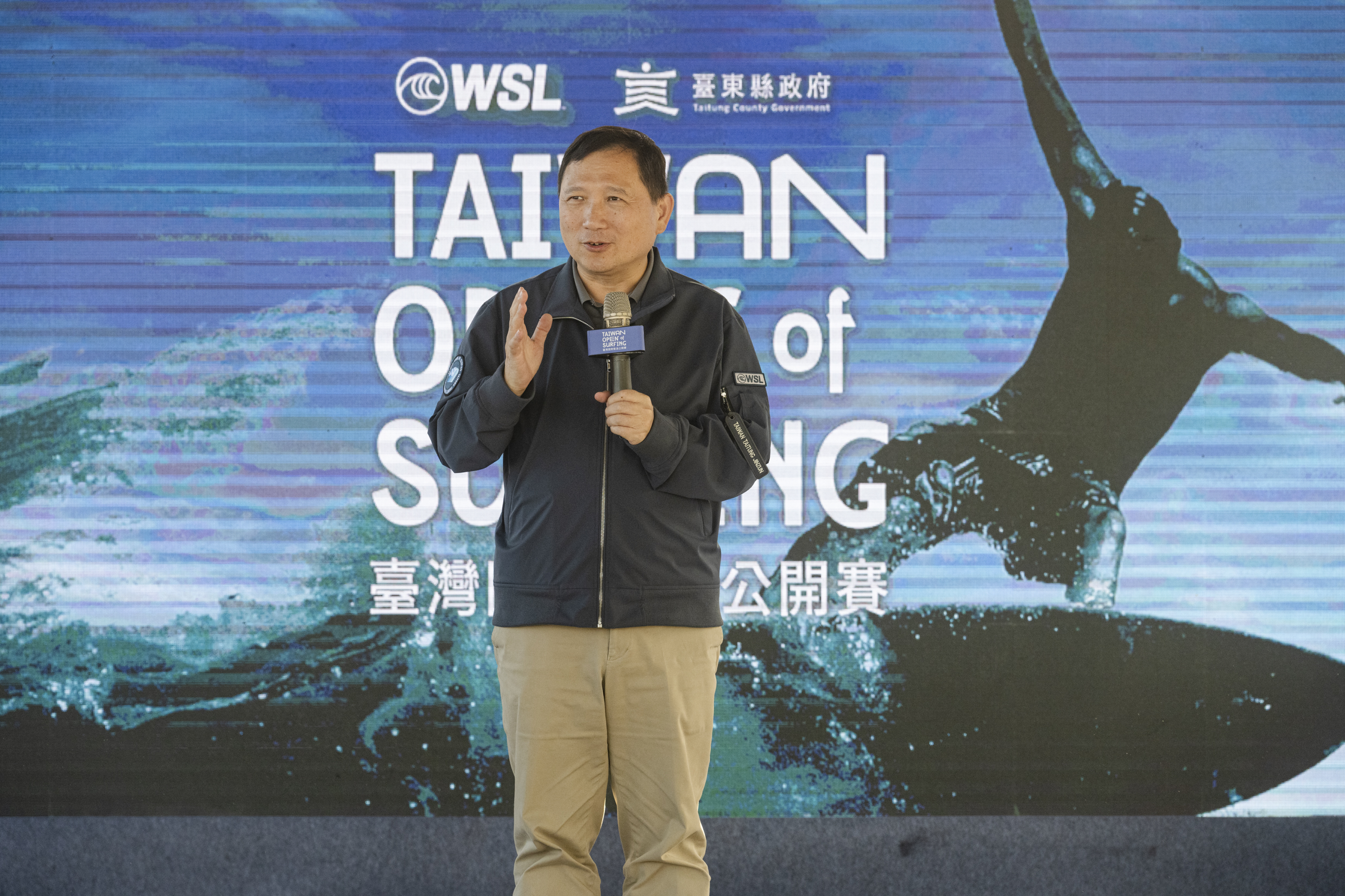 2025臺灣國際衝浪公開賽今(4)日於臺東東河金樽漁港盛大開幕,由臺東縣政府王志輝副縣長、世界衝浪聯盟(WSL)高級經理 Will Hayden-Smith、運動部鄭世忠政務次長及活動大使鼓鼓呂思緯共同出席揭幕,為期八天的國際賽事邀集來自全球12國、超過200名菁英選手齊聚浪尖競技,歡迎民眾來臺東欣賞、享受全國等級最高衝浪賽事。