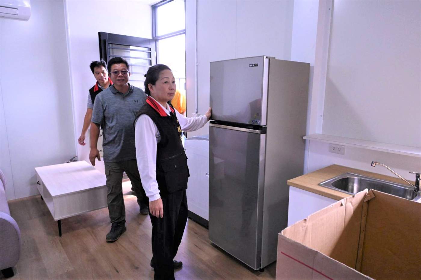 0403大地震重創花蓮,造成多棟大樓傾倒,許多鄉親無家可歸。為協助受災民眾安心度過重建階段,花蓮縣政府與中華民國紅十字會合作興建「組合屋」,預計11月8日開放受災戶看屋,11月底完成簽約,12月起陸續入住。縣長徐榛蔚於今(4)日前往視察組合屋家具與家電配置,確保居住空間功能完善。
