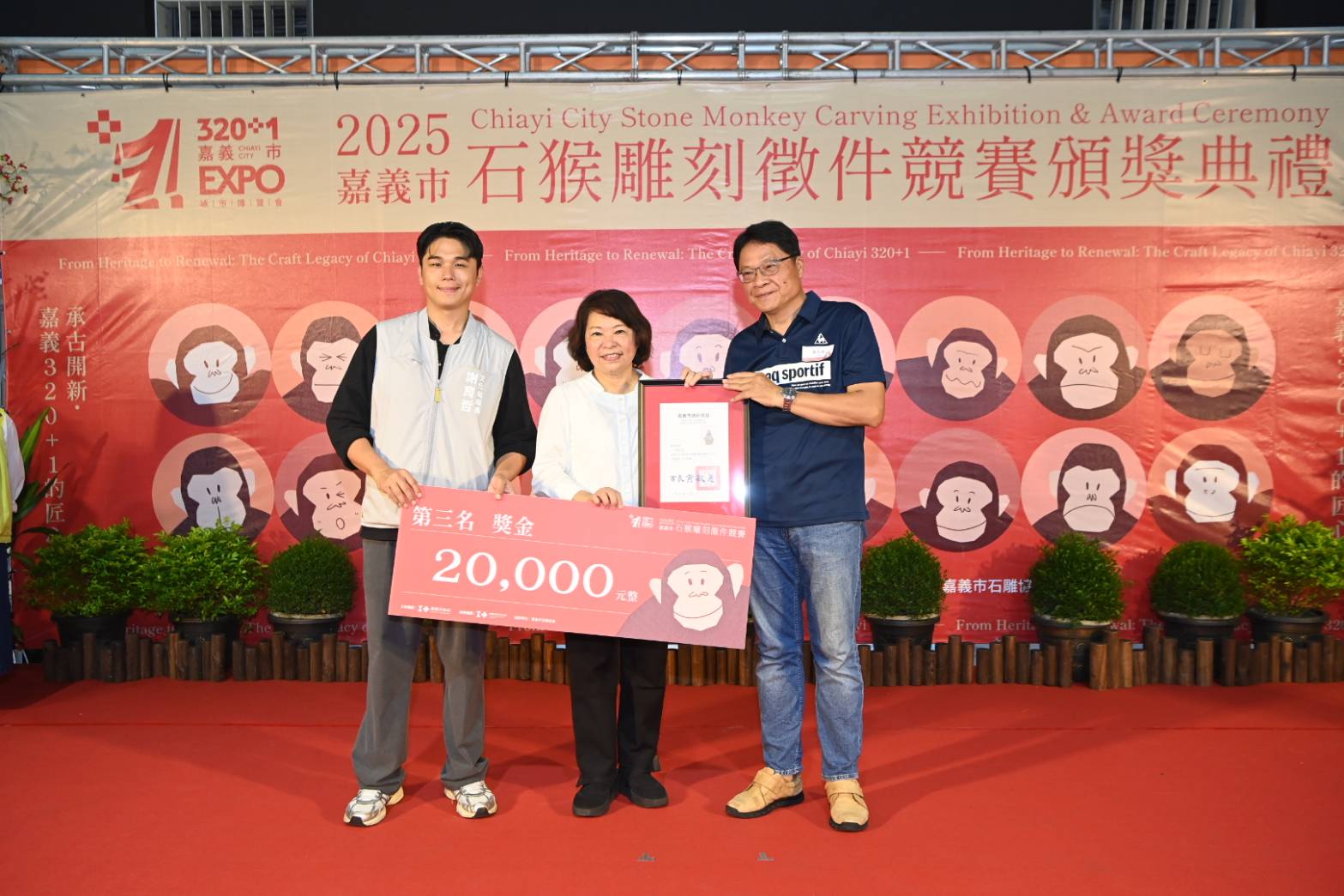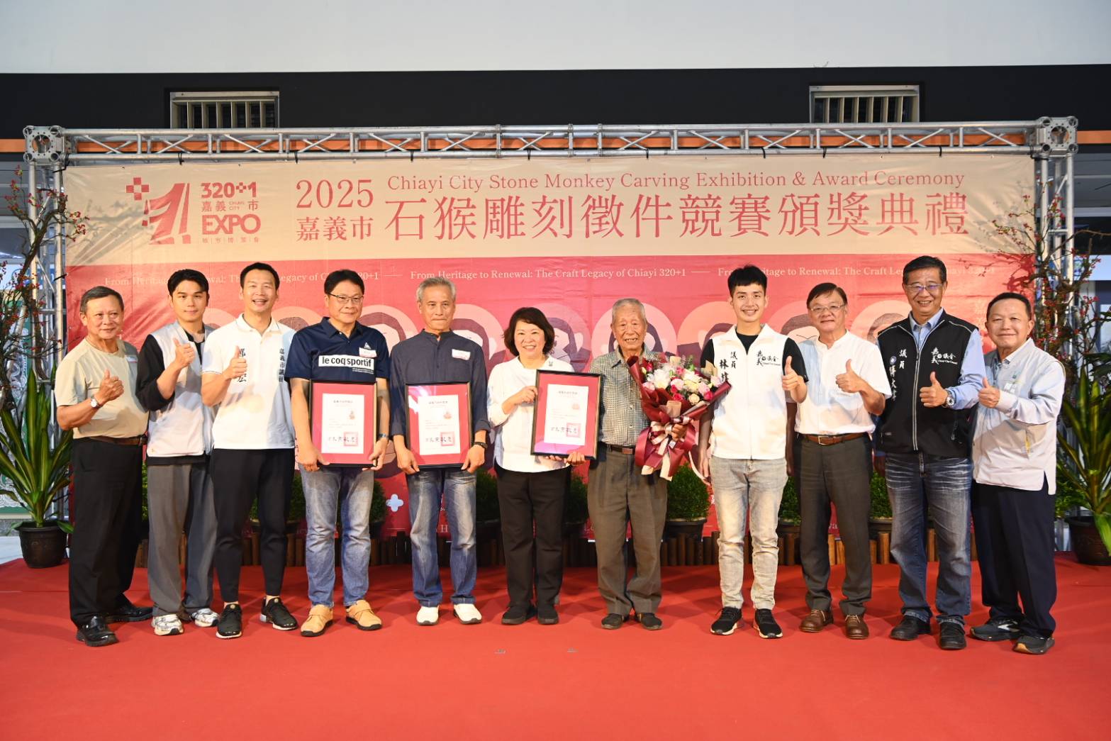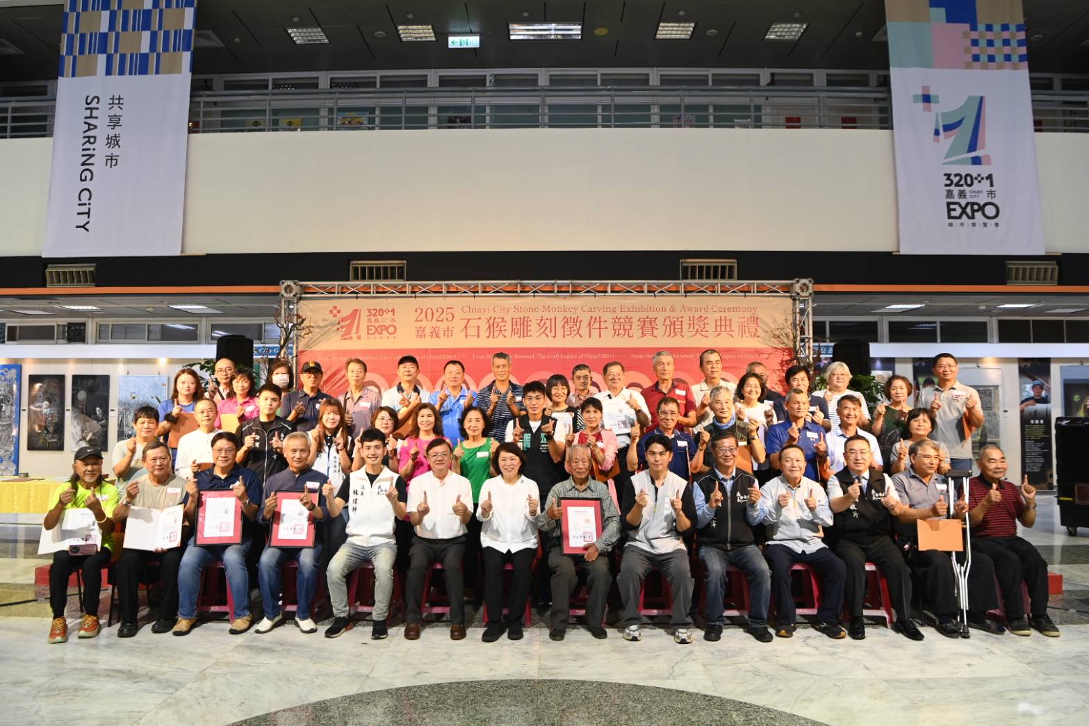 全部得獎作品自即日起至11月16日止,於嘉義市政府1樓大廳中庭展出,歡迎市民朋友與石猴藝術愛好者踴躍參觀,感受嘉義獨有的工藝之美。