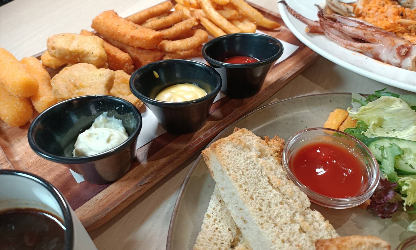 此外,開胃小點中的 「每日精選酥皮濃湯」 是人氣首選,金黃酥皮香氣撲鼻,敲開的瞬間酥皮酥的掉渣,熱氣裊裊的濃湯隨之散發迷人奶香。酥脆可口的炸物系列同樣不能錯過,包括 「經典炸物雙拼」、「炸物三重奏」 及 「派對總匯拼盤」 等多款選擇,無論小酌搭配或聚餐分享,都是開胃與歡聚的絕佳良伴。