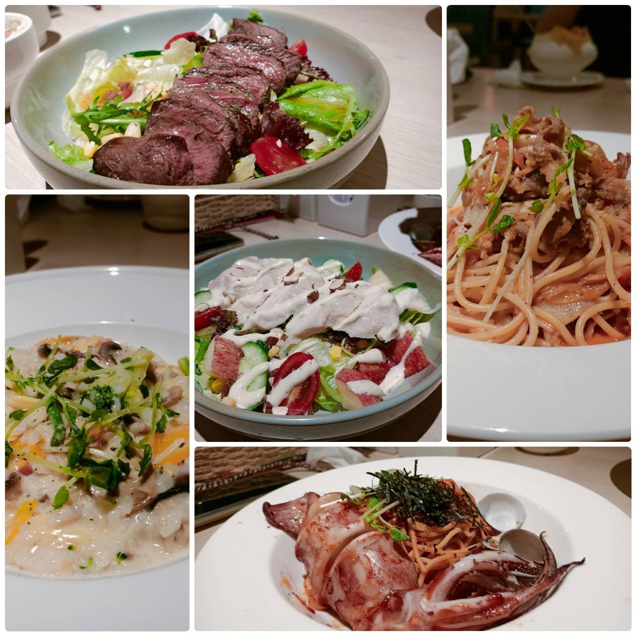 「嫩煎牛排柚香和風沙拉」嫩煎牛排外層微焦、內裡鮮嫩多汁,與爽脆的新鮮生菜一起入口,交織出香氣與口感的雙重層次。和風醬汁酸甜清香,恰到好處提襯出牛肉的鮮味與蔬菜的清爽,整體口感清新不膩。