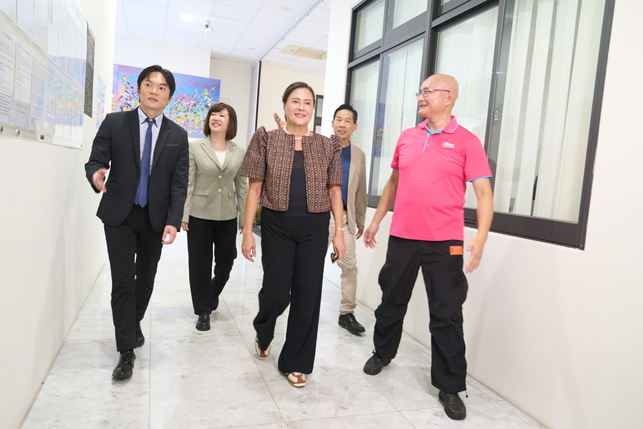 經發局說明,彭代表熱衷於倡議兩性平權,擅長行銷及國際交流,長期協助政府推廣農業、觀光與經貿。彭代表誠意十足,為精確掌握時程,選擇與辦事處同仁駕車從台北直奔台中,提前30分鐘抵達表達對於此行的重視。端莊優雅的氣場一下車便吸引眾人目光,從妝髮到服裝都十分重視細節,過程中更時常確認鏡頭與走位有無符合導演需求,展現敬業、專業、熱情的一面令工作團隊印象深刻。