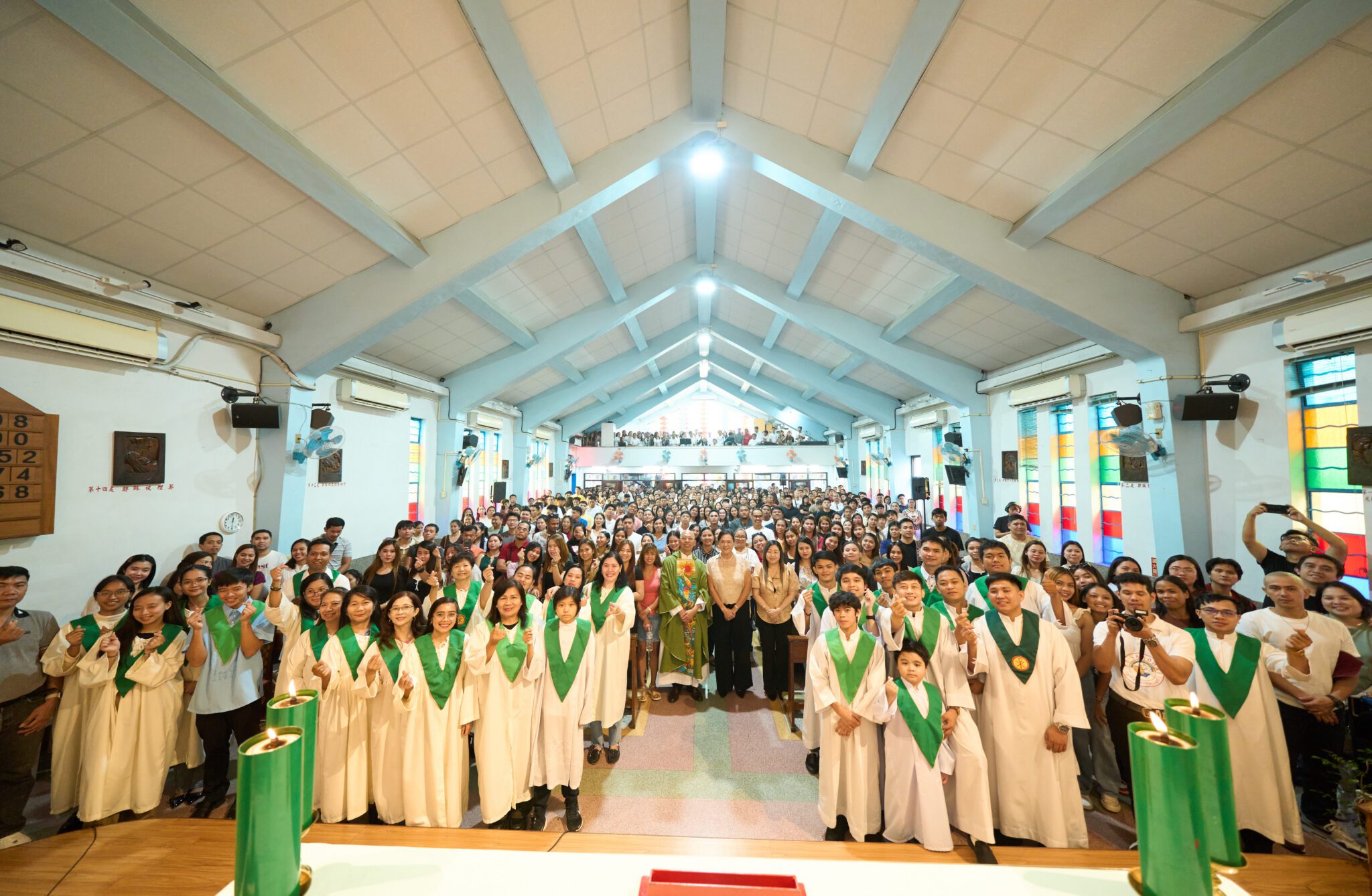 經發局說明,此行首站來到南區「無原罪聖母堂」,鄰近最「台」的第三市場竟有一座南洋風天主教堂,在地台中人也鮮少登堂體驗。彭代表出席的消息吸引眾多菲國朋友聚集,二樓禮堂摩肩接踵,用最滿的熱情迎接家鄉代表。在菲籍神父陳智仁引領之下,彭代表雙手合十、虔誠禱告,滿心都是對於他鄉故知的祝福,遠離家鄉卻像回家,彭代表親吐對於這座教堂的感動,「The Madam」的溫柔與堅定透過鏡頭表露無遺。