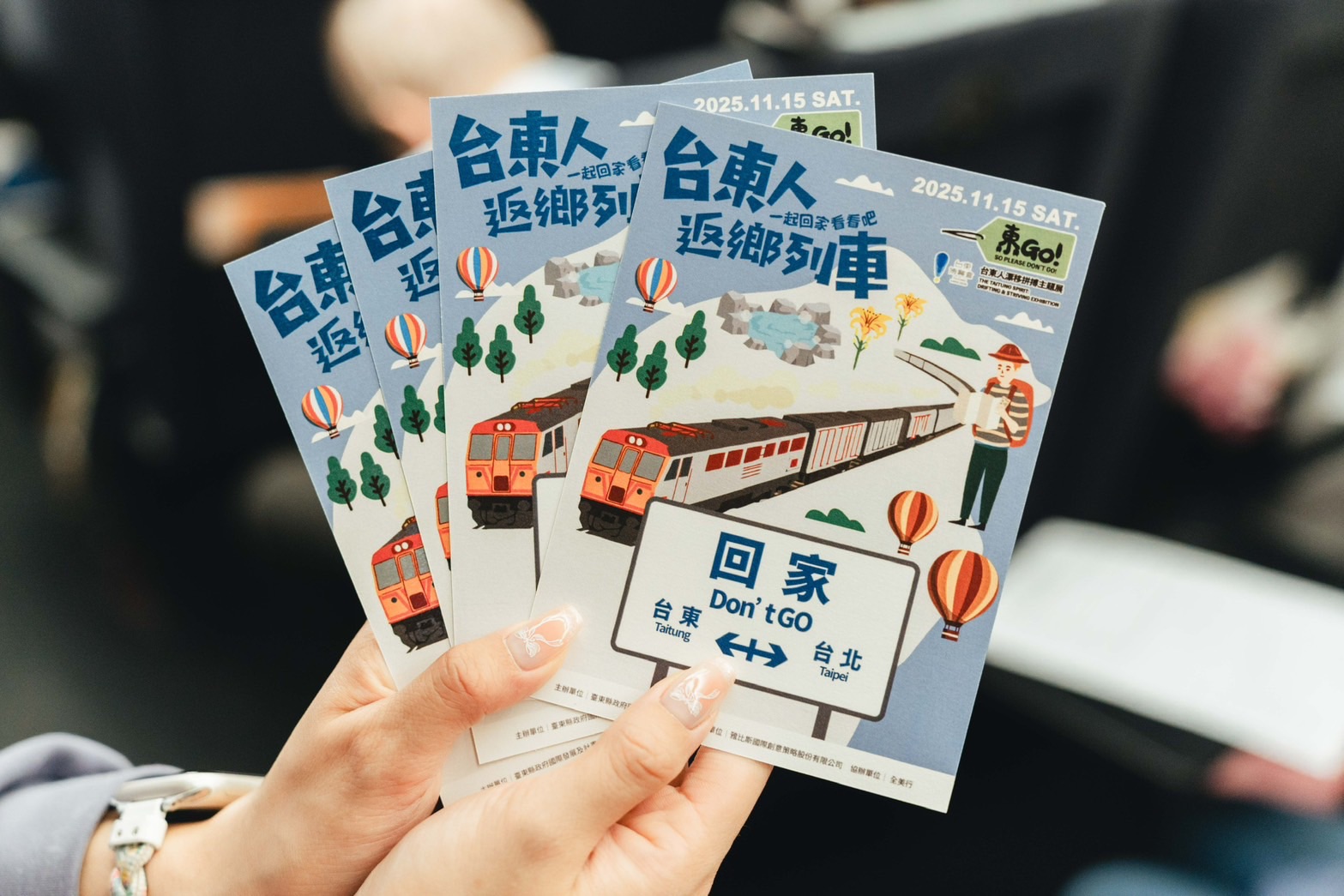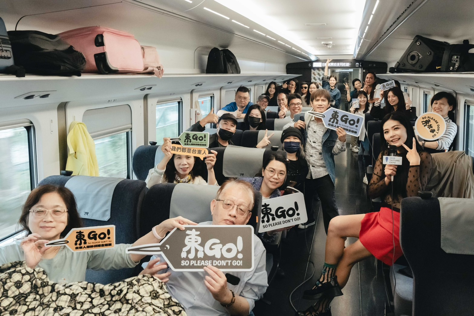 臺東縣政府為將辦理「2026臺東博覽會」,藉由活動「東GO!臺東人漂移拼搏主題展」為意象,包下由臺北出發的自強號騰雲座艙,在旅外臺東鄉親報名搭乘返鄉的旅途中,由知名歌手、藝人、音樂人們的陪伴下,鄉愁、歌聲與歡笑,讓回鄉之路不再孤單,卻已讓大家不捨得下車。