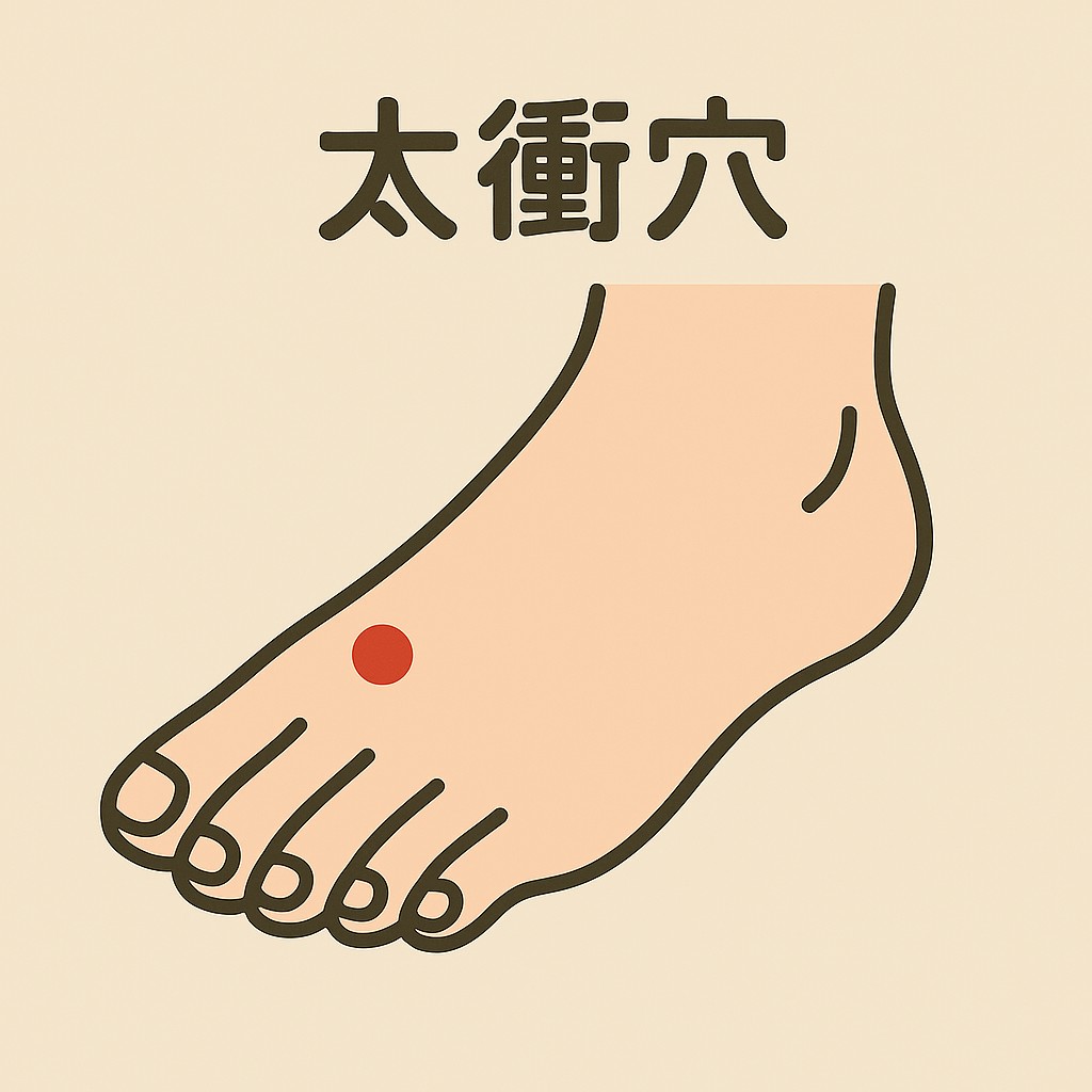 太衝穴(腳背第一、二趾骨間):舒緩焦躁、穩定情緒。