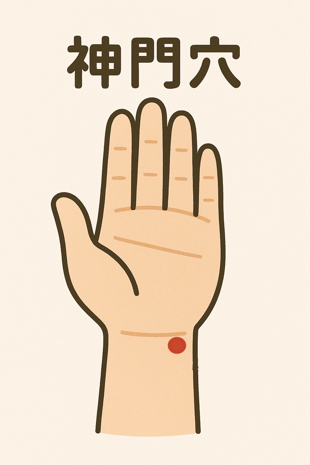 神門穴(手腕小指側):安定情緒、幫助入睡。