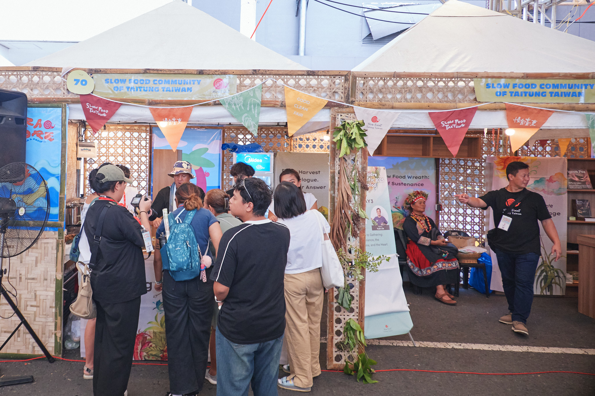 此外,臺東館的攤位上的活動也成為展區的焦點,米其林綠星餐廳 EMBERS 主廚郭庭瑋與臺東慢食聯手,共同呈現一場精采的「臺灣主食料理示範」。主廚運用臺東傳統食材如小米、芋頭、樹豆等原鄉風味,創造出年會限定的臺灣主食料理套餐。在現場烹飪示範中,主廚與代表隊成員不僅展示了不同族群的主食處理與料理智慧,更將來自臺東土地的傳統滋味精緻呈現,讓眾多與會人士得以親自品嚐,深刻體驗臺灣多元而豐富的飲食文化,成功傳達了臺灣南島飲食文化的獨特魅力。