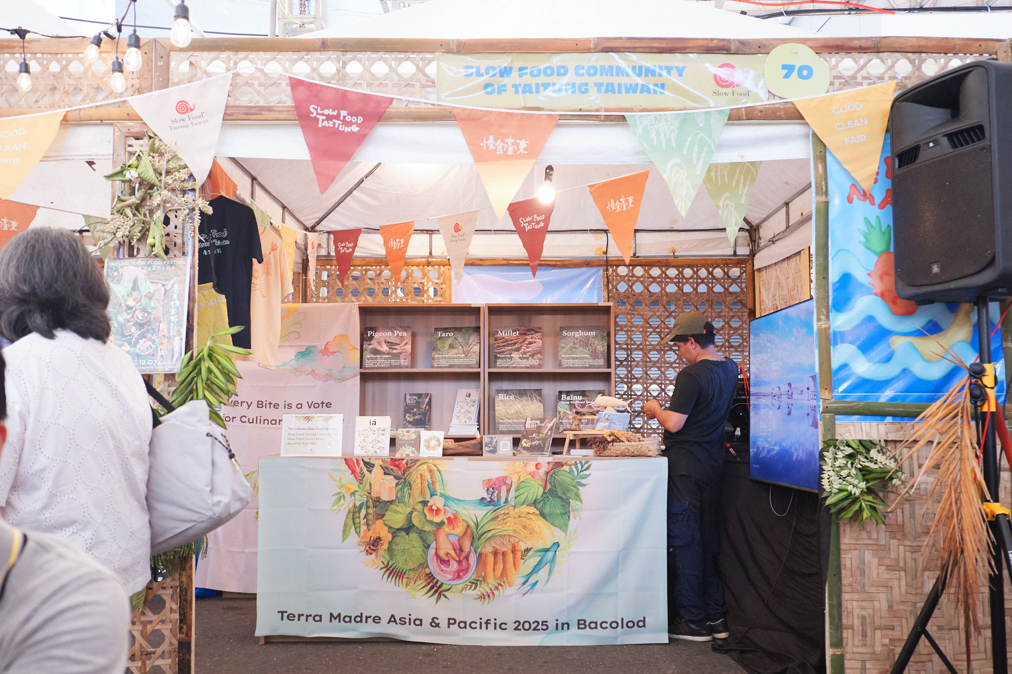 縣長饒慶鈴縣長率團前往菲律賓巴科羅,參加2025亞太慢食年會的臺東慢食代表隊,在盛大的開幕儀式後,隨即開始在大會舞台以及臺東館內與國際友人進行飲食文化交流。