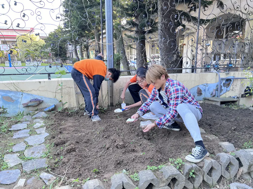 校長曾靜怡深信校園空間應與永續結合,全力支持將綠地賦予新生命。這份教育夢想背後,有一群被稱為「最強後援軍」的溫暖支持,家長會長蔡欣怡、榮譽會長可裕、雅玫,以及全體家長委員與志工團隊,不僅提供資源,更親自挽起袖子投入。學校更邀請在地小農與退休的李校長進駐指導,從專業場勘到操作小型翻土機,為這片土地打下厚實的基礎,讓食農教育充滿了社區共融的溫度。