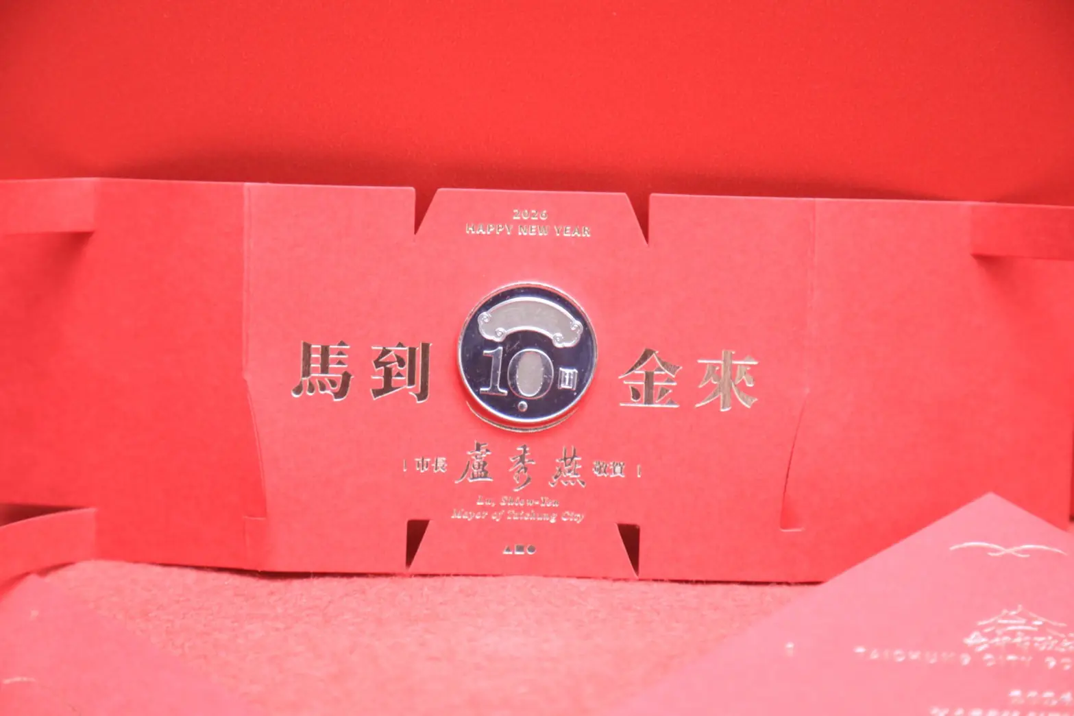 迎接2026農曆丙午(馬)年,台中市政府推出全新設計的新春賀歲小紅包,以象徵「豐盛共享」為主題,市長將於新春期間發放給市民朋友,傳遞市長對市民與家人的誠摯祝福,祝願大家在新的一年「馬到金來」、好運連連。