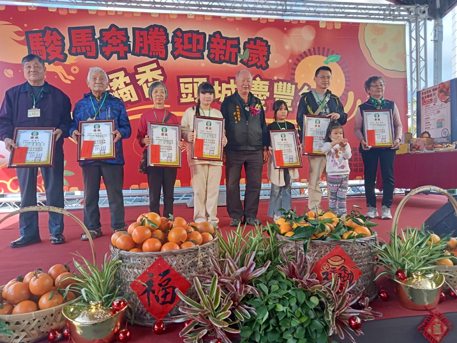 頭城鎮農會4日舉辦115年柑橘產業行銷暨頭城鎮慶祝農民節表彰活動。受表揚有各農事小組績優農民45位、績優產銷人員5位、績優四健表彰人員4位、績優青農1位、績優家政人員10位、績優榮退推廣志工7位、資深選任職員4位、協助金融事業推展有功單位及人員10位,共有86位。