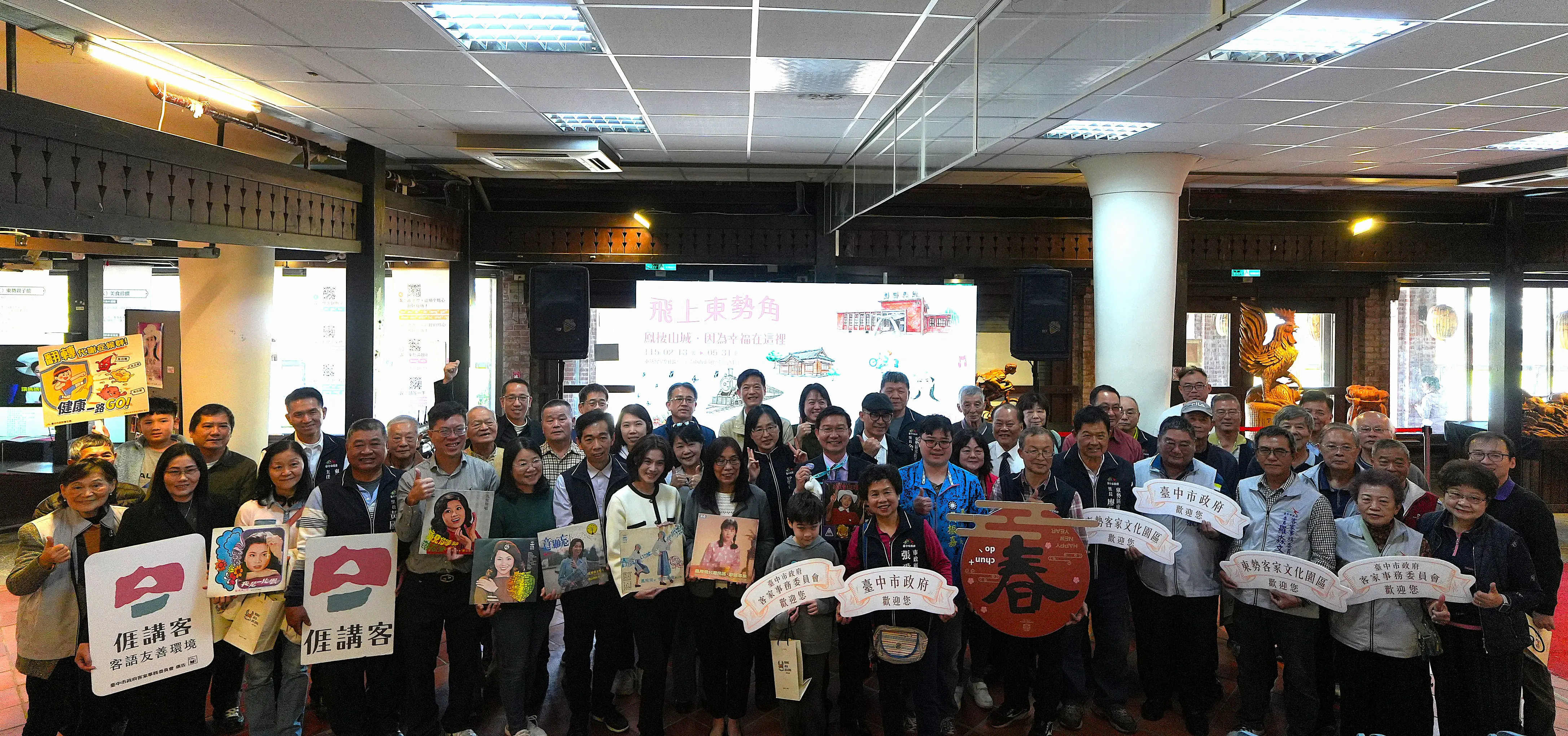 為迎接農曆新年到來,台中市政府客家事務委員會今(13)日在東勢客家文化園區攜手鳳飛飛慈善基金會,舉辦「飛上東勢角~鳳棲山城・因為幸福在這裡」特展開幕式,歡迎市民朋友走進東勢,聆聽鳳飛飛的歌聲、領略山城東勢的獨特魅力,感受客家文化深厚的人文底蘊與幸福價值。