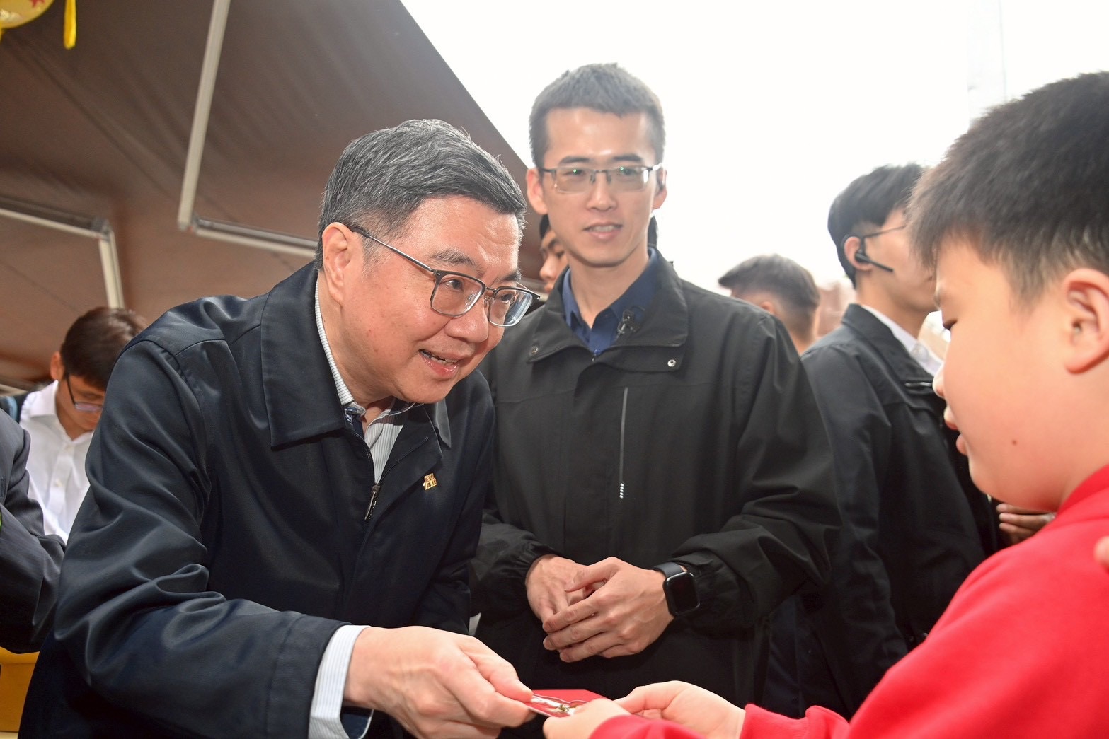 卓榮泰17日下午在政委陳金德、民進黨宜蘭縣長參選人林國漳及立委陳俊宇等陪同下,於宜蘭市碧霞宮及礁溪協天廟參拜祈福、向民眾發送新年紅包。