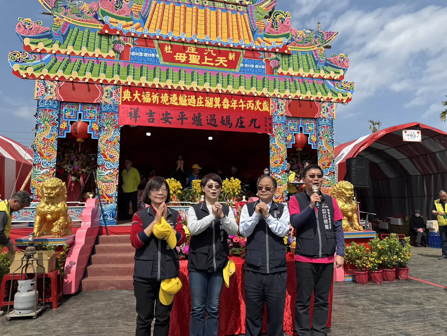 新社傳承兩百餘年的媽祖信仰、全台聞名「有神無廟」的在地盛事「新社九庄媽文化節」於今(20)日盛大舉辦。天色未亮各路人馬凌晨4時正式集結於月湖爐主府整隊,清晨4:30由輪值庄爐主江吉慶、市議員蔡成圭、台中市政府客家事務委會主委江俊龍共同點起馬炮,隨後九庄媽起駕,數千名信眾展現高度熱情,伴隨鑼鼓聲展開徒步遊庄遶境,為地方祈求新的一年風調雨順、歲稔年豐。