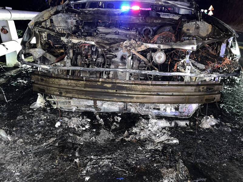 蘇花公路東澳段火燒車意外,自小客車燒到剩下骨架。