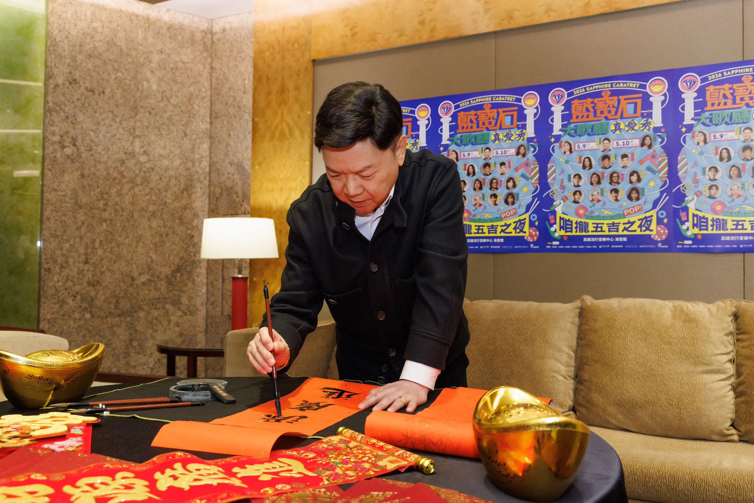 高流五週年母親節強檔鉅獻《 2026真愛秀.藍寶石大歌廳》將於5/9、5/10盛大登場,今年演出卡司一字排開陣容強大,不僅力邀寶島歌王葉啟田領軍一票秀場老將新秀齊聚,更找來秀場天王黃西田與苗可麗、侯怡君兩大金鐘主持天后搭檔掌舵主持棒,堪稱是最華麗的黃金主持陣容,屆時將合力重現藍寶石大歌廳傳奇巔峰!趁著馬年開春,三位主持群特別與葉啟田夢幻合體齊力揮毫賀歲向觀眾拜晚年,只見四人拿起毛筆大秀書法實力各自寫下充滿寓意的吉祥字「吉、金、進、滿」,除了預祝演唱會買氣金光閃閃、票房滿出來,更呼應今年藍寶石大歌廳主題高喊「咱攏五吉(有錢)」祝福每一位買票力挺的觀眾都能「福氣滿滿、大賺錢」!