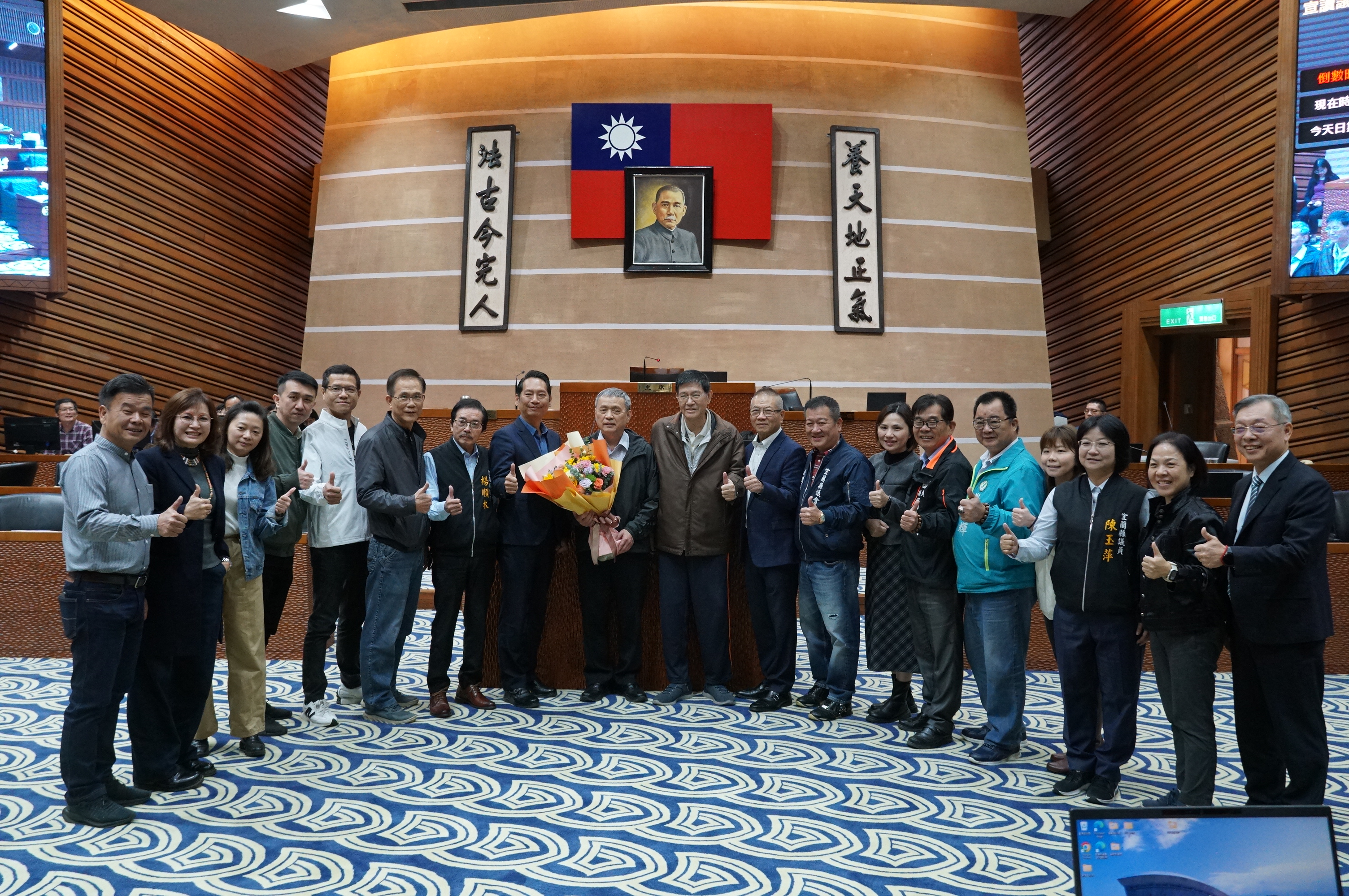 議會114年度最後1天的議程,議長張勝德、副議長陳漢鍾、秘書長官伸科及多位議員,在議事大廳特別表達高度肯定與誠摯感謝,感念其多年來對議會運作的專業付出與無私奉獻。