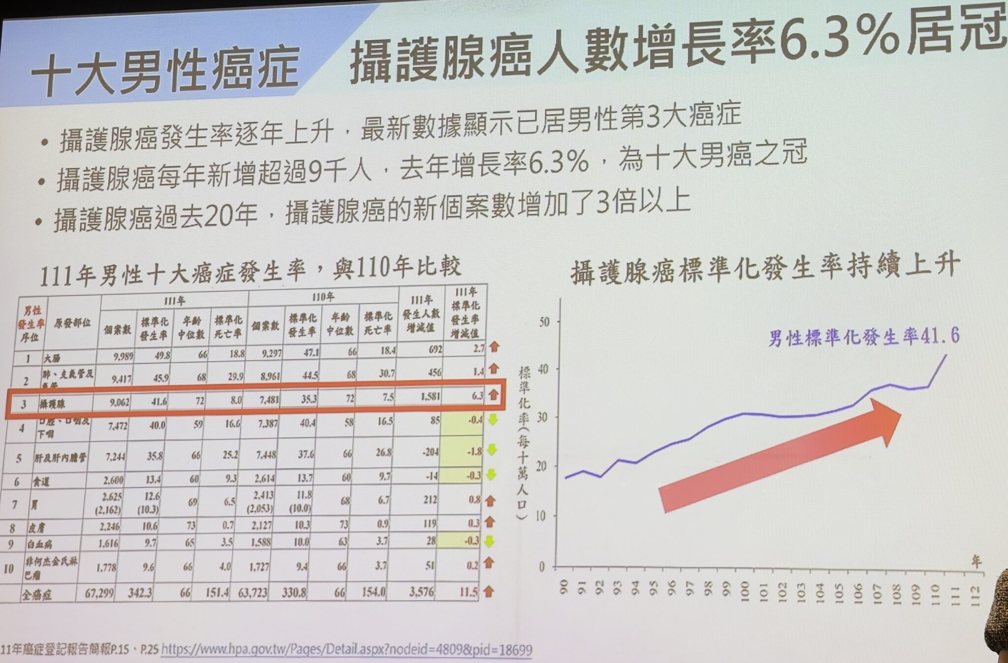圖説:十大男性癌症,攝護腺癌人數增長率6.3%居冠。(記者王承綸/攝)