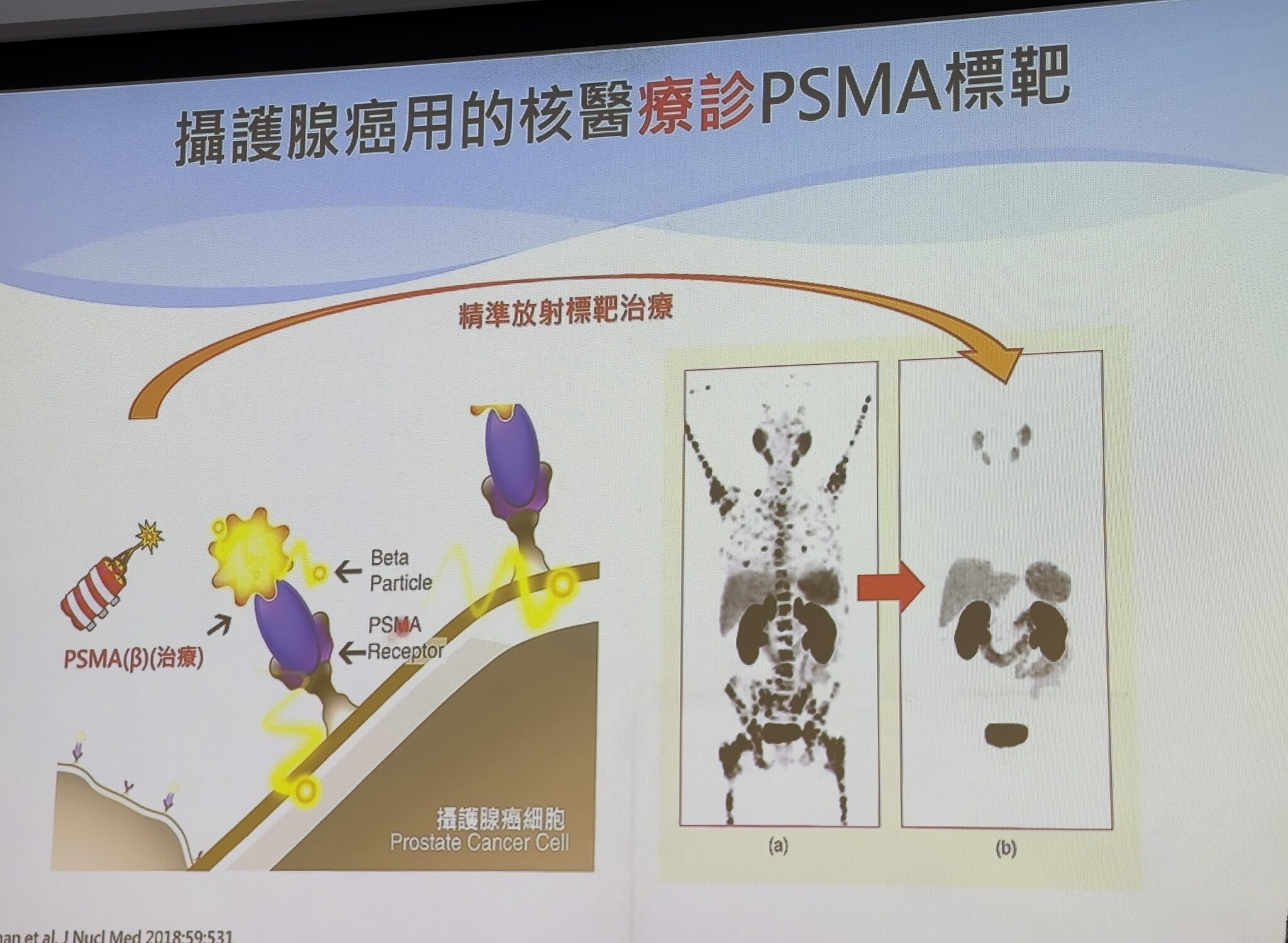 林子平解釋,晚期攝護腺癌的治療常以荷爾蒙治療為主,但平均約3至5年後,癌細胞可能產生抗藥性,演變成「轉移性去勢抗性攝護腺癌(mCRPC)」。此階段癌細胞常轉移至骨頭,造成疼痛或病理性骨折。隨著醫療進步,「精準放射標靶治療」的誕生,讓攝護腺癌進入精準治療的時代,也獲國內外重治療指引最高證據等級的推薦。
