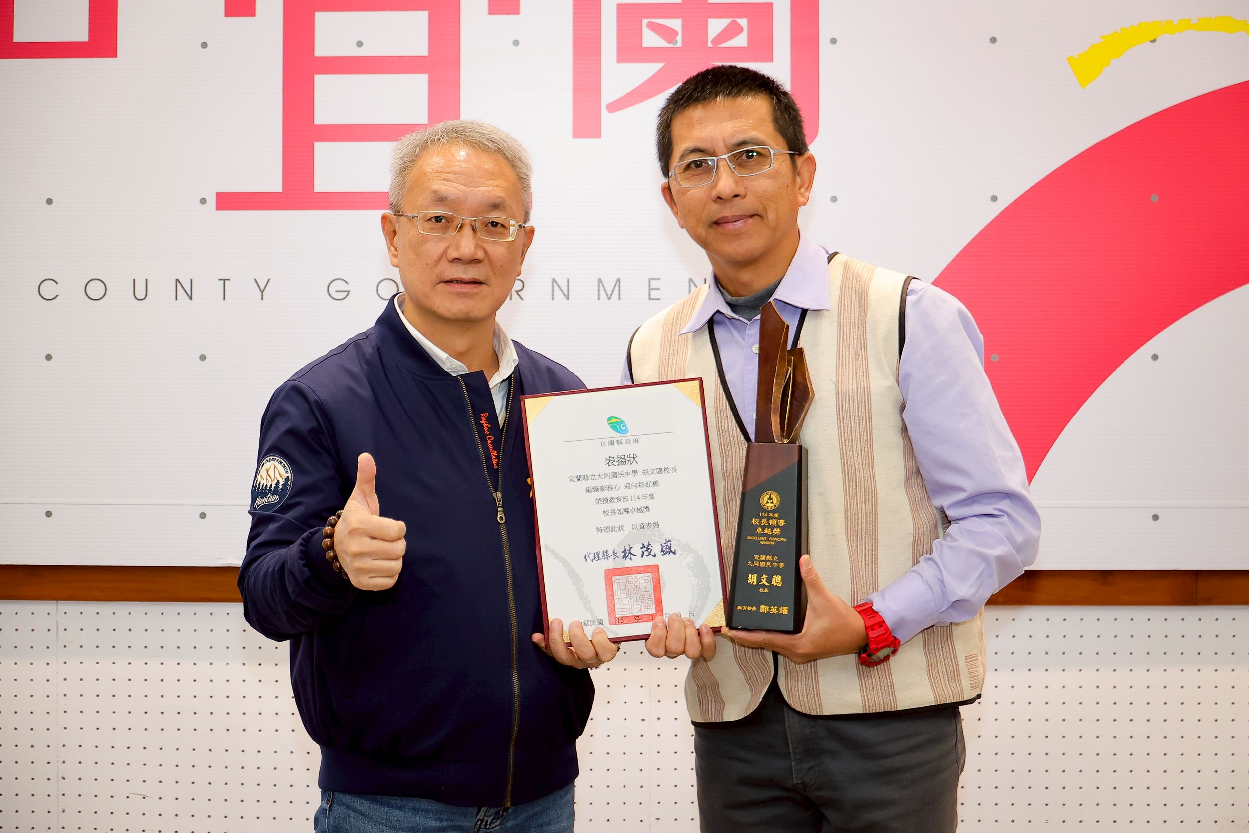 教育部舉行「114年度教育部校長領導卓越獎暨教學卓越獎頒獎典禮」頒獎典禮。校長領導卓越獎由大同國中胡文聰校長、岳明國中小黃建榮校長獲獎,教學卓越獎部分由四結國小榮獲國小組金質獎,另南澳高中國中部獲佳作,6日縣務會議中由代理縣長林茂盛表揚。