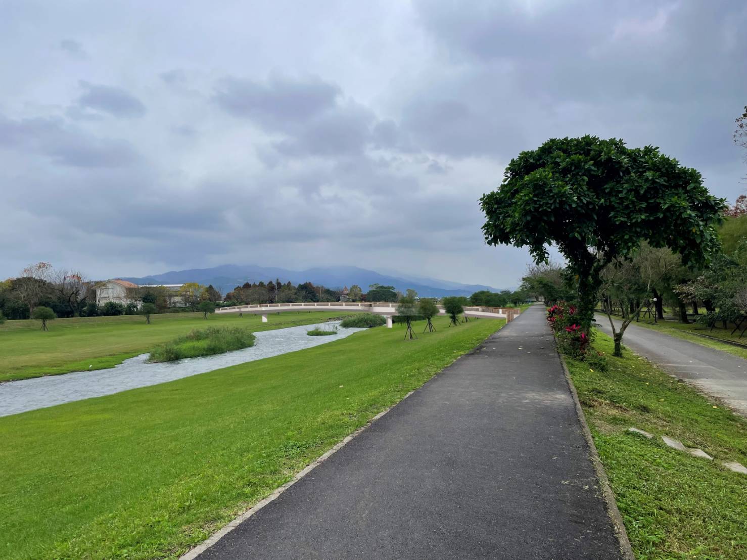 該工程橋梁設計以「安全、友善、景觀融合」為核心理念,採自行車與行人共用方式,橋梁長度約90公尺,橋寬3公尺,結構系統採三跨連續PC中空版梁型式設計,橋面設置防滑鋪面、規劃護欄與夜間照明系統,並兼顧河岸景觀視野,營造舒適宜人的休憩動線。