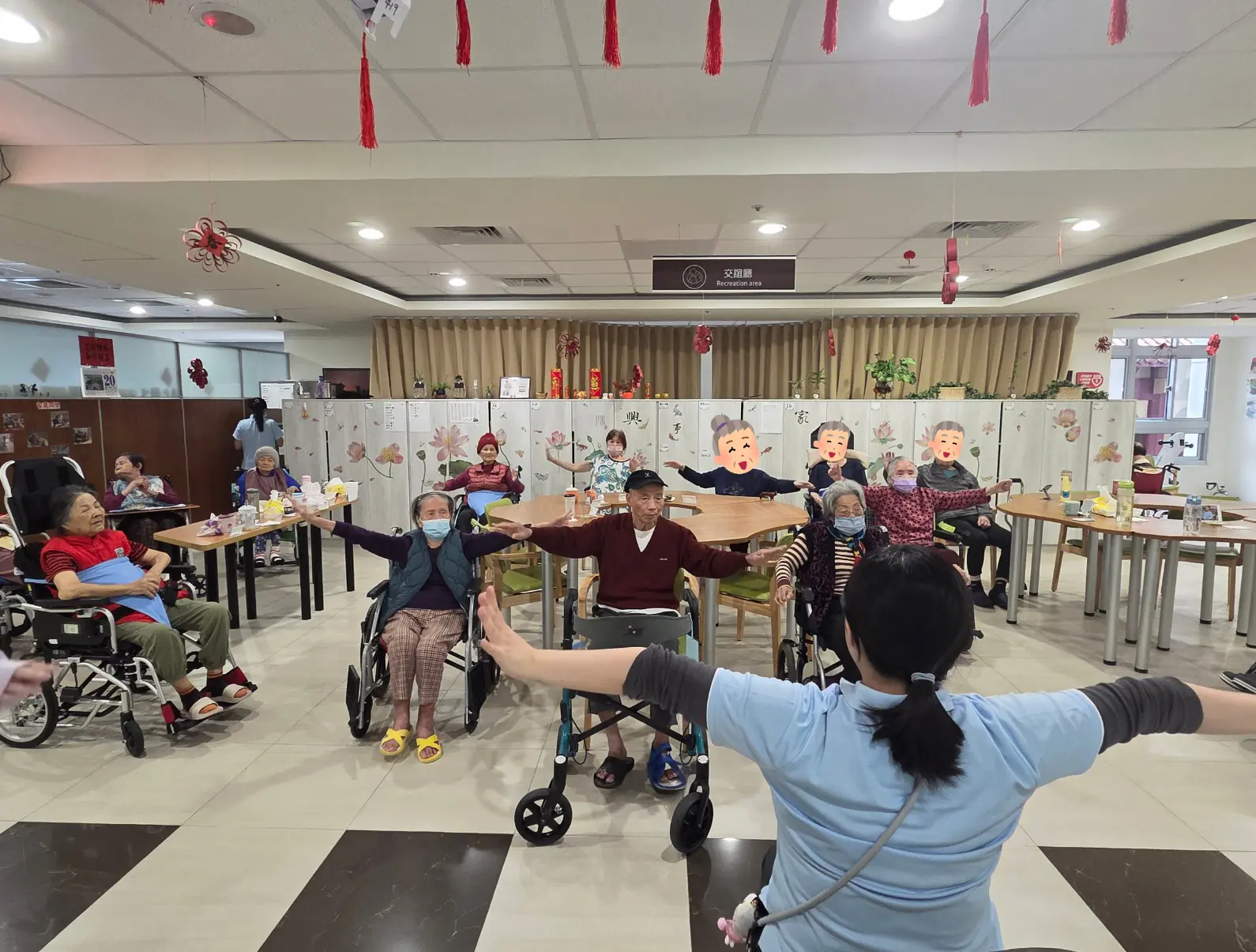 蘭陽仁愛之家長照中心社團活動伸展操時間 長者跟著節奏舒展心情