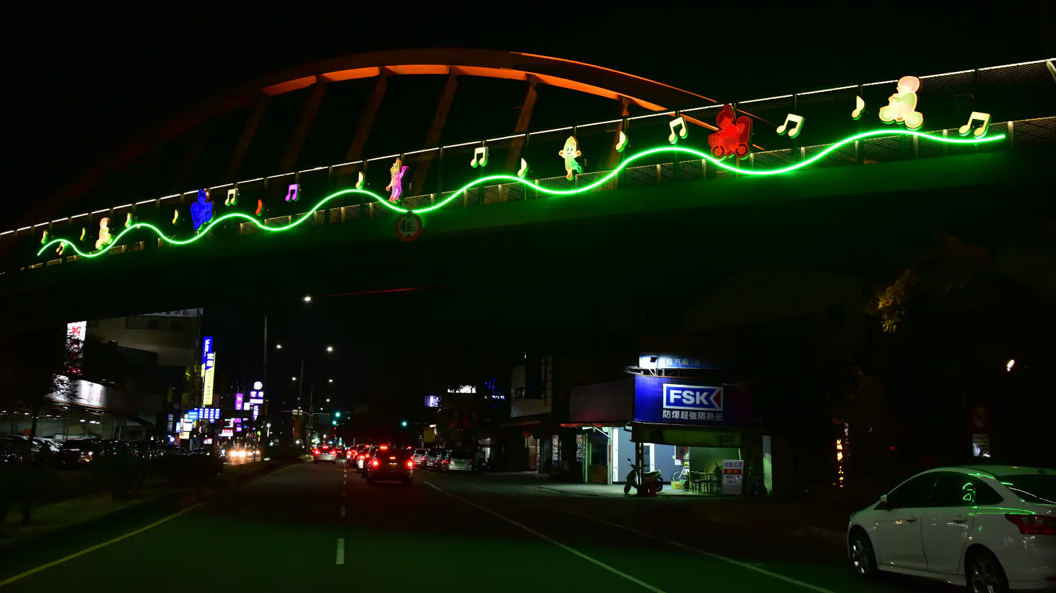 市府表示,透過線性光帶、造型燈箱與意象圖案的結合,橋梁與空橋在夜間形成具有辨識度的光環境景觀,騎士穿越節點時可感受到流動的光影氛圍,打造具有記憶點的騎乘體驗,未來將持續優化自行車騎乘環境與景觀節點,打造兼具安全、休閒與觀光特色的自行車路網,讓民眾在自行車道享受健康、友善且富有城市魅力的騎乘體驗。
