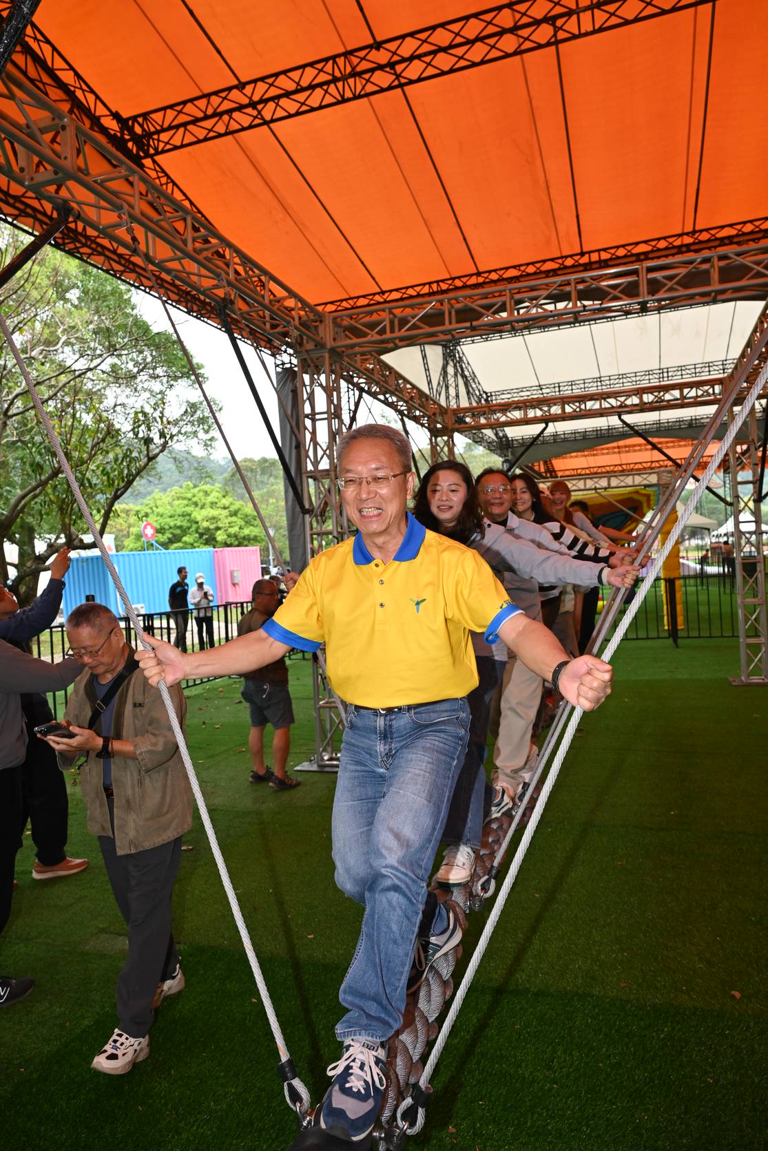 代理縣長林茂盛體驗園區遊戲設施,宣布27日綠博「試營運」開放縣民免費入園搶先體驗。