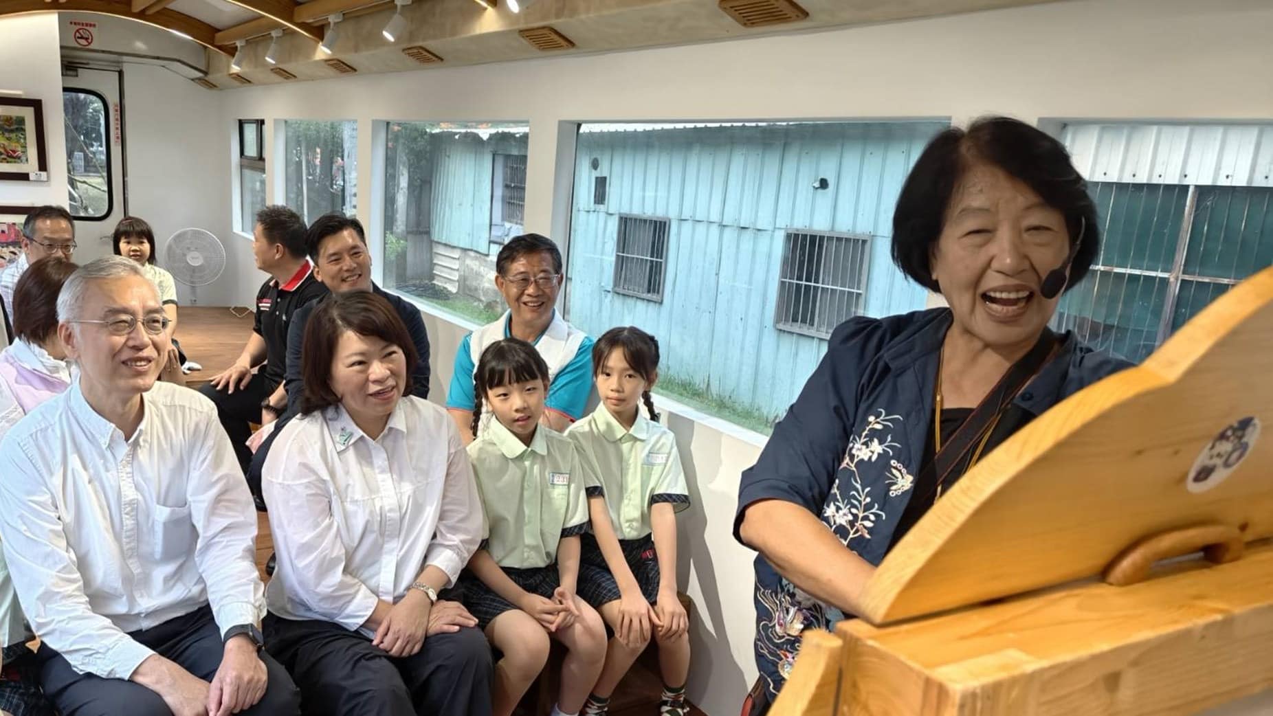 黃敏惠與林森國小師生同慶林鐵車廂新生 搖身校園特色閱讀空間