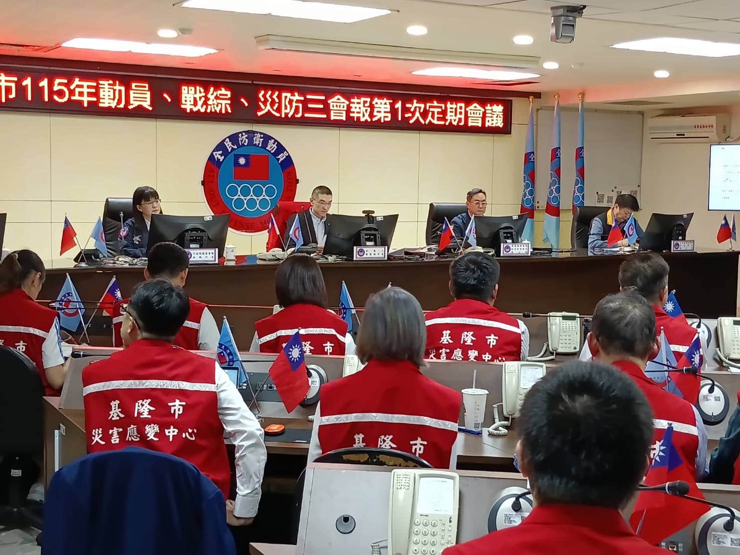 基隆市於3月31日召開115年「全民防衛動員準備、全民戰力綜合協調暨災害防救」三合一會報第1次定期會議,由市長謝國樑主持。上級指導官行政院動員會報執行長林純玫、行政院災害防救會報副主任鄒勳元、臺閩戰綜會報秘書組副組長孫福康上校、北區後備指揮部副指揮官陳柏青上校等人共同出席,與基隆市政府各局處及管線單位等首長進行跨機關整合與討論。