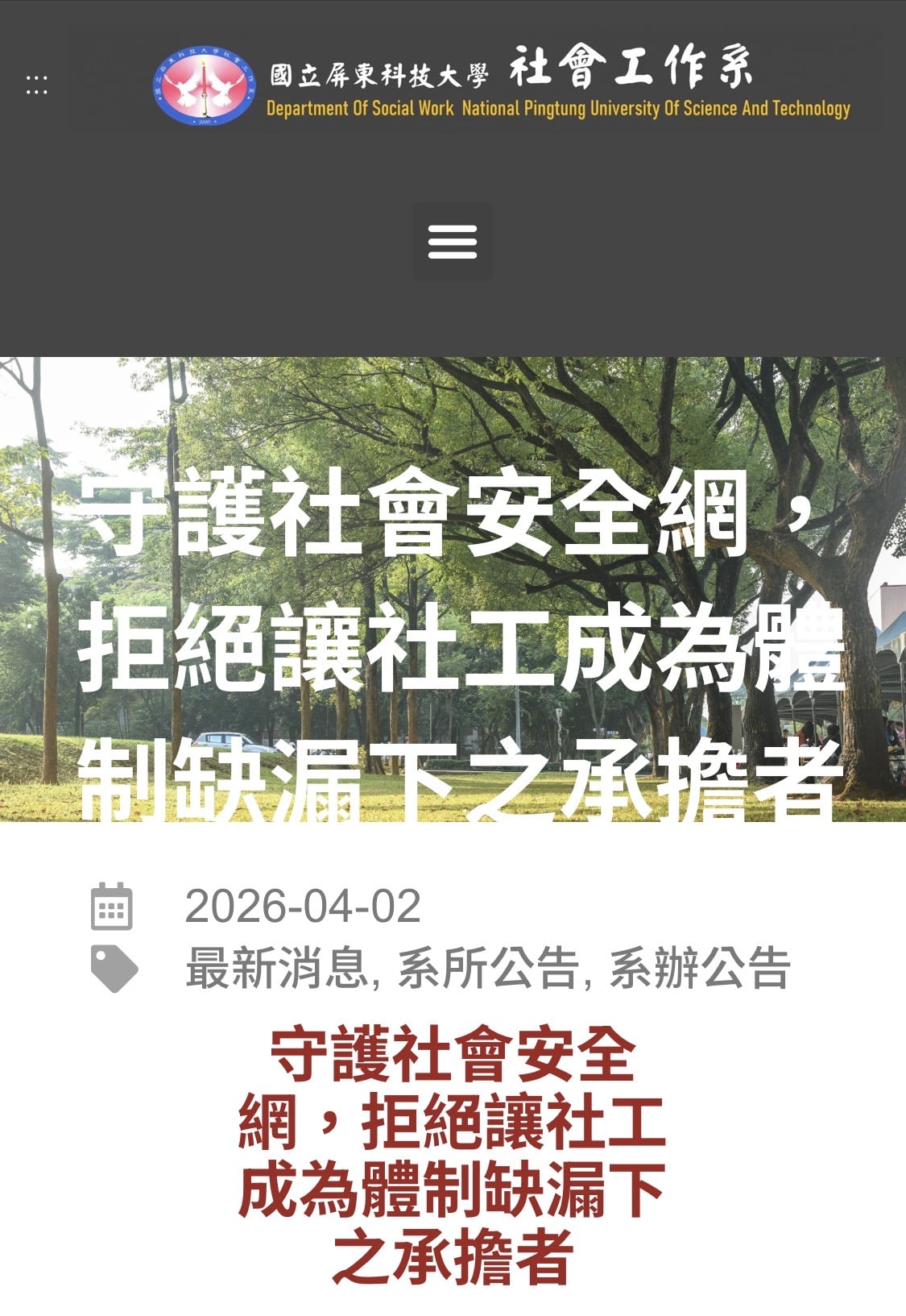 🔗 國立屏東科技大學社會工作系