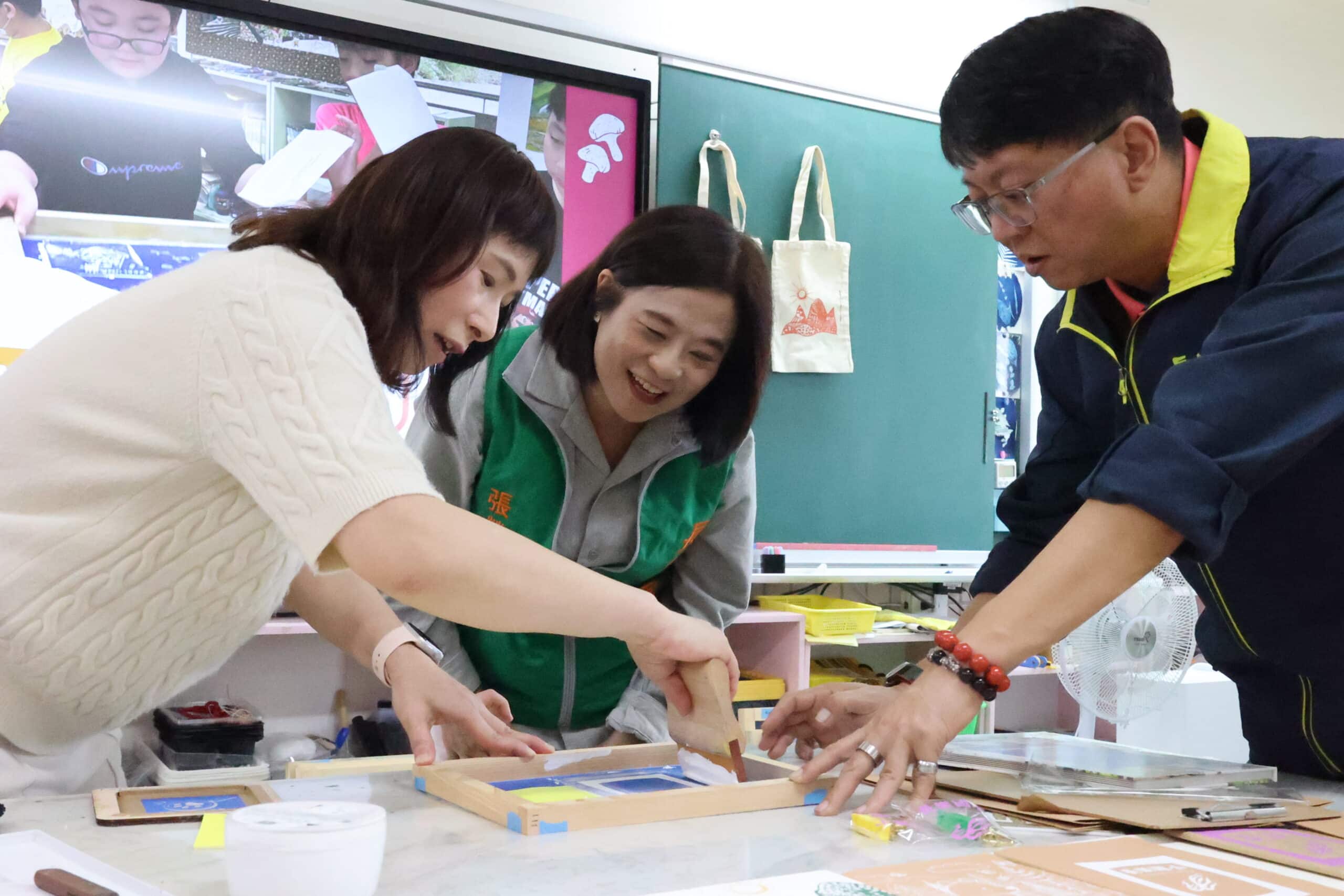 張榮發基金會鍾執行長進行網版印刷活動。