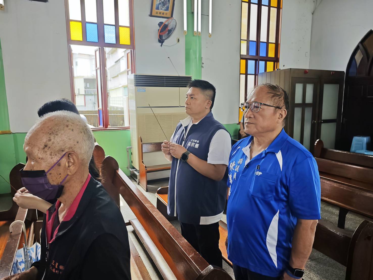 高中畢業即到天主教蘭陽青年會游泳池擔任救生員也是人生領到第一份薪水是神父給的縣議員陳鴻禧(右)到場迎靈。