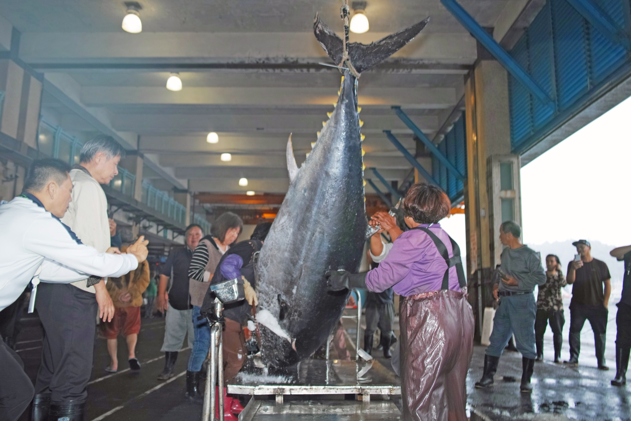 經過磅,重達276公斤,蘇澳區漁會鑑定活魚上鉤,認定是今年蘇澳第一鮪。