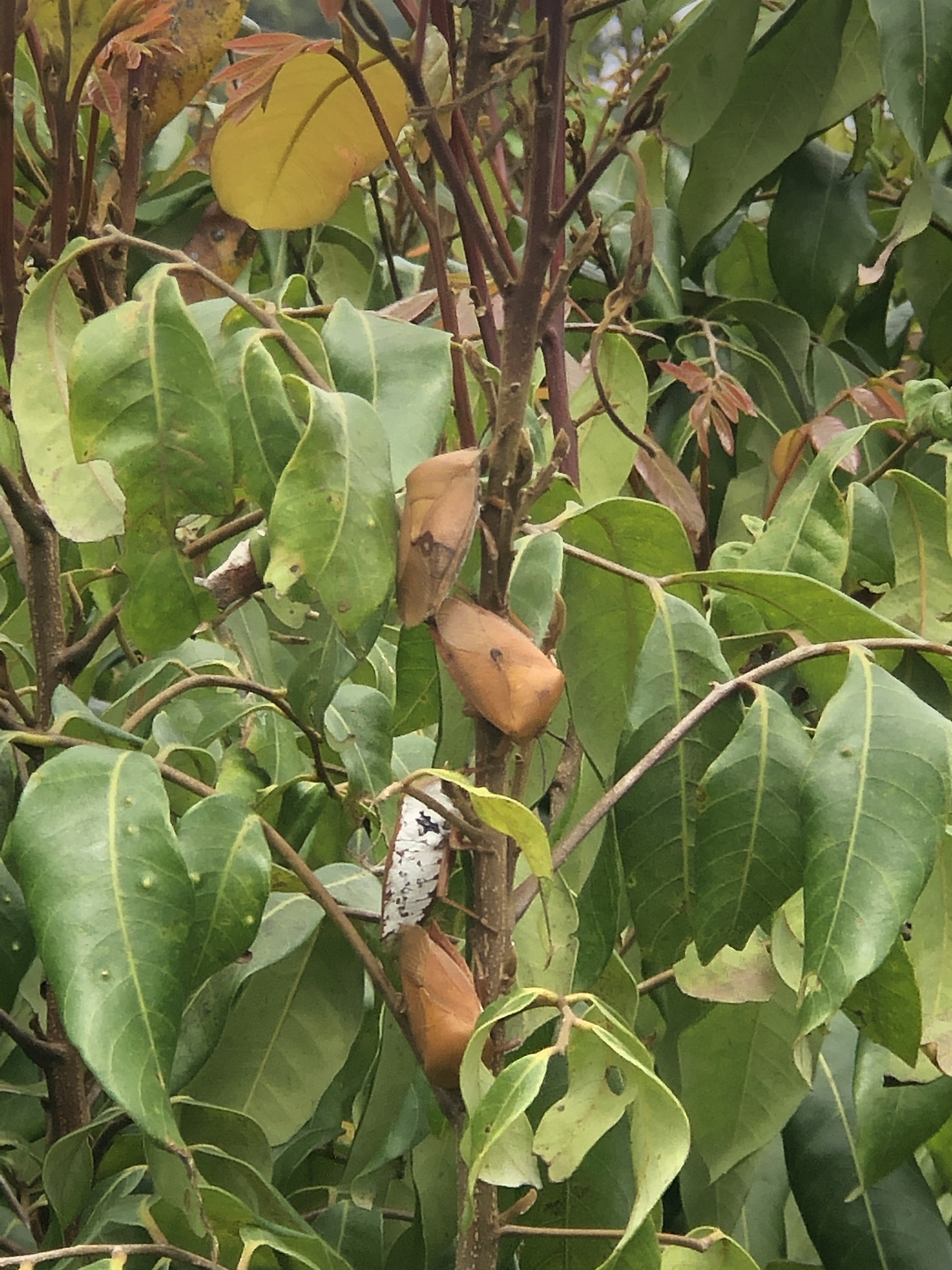 縣府針對縣內種植荔枝、龍眼及台灣欒樹等無患子科植物之農業區及學校,吊掛「平腹小蜂」卵片。