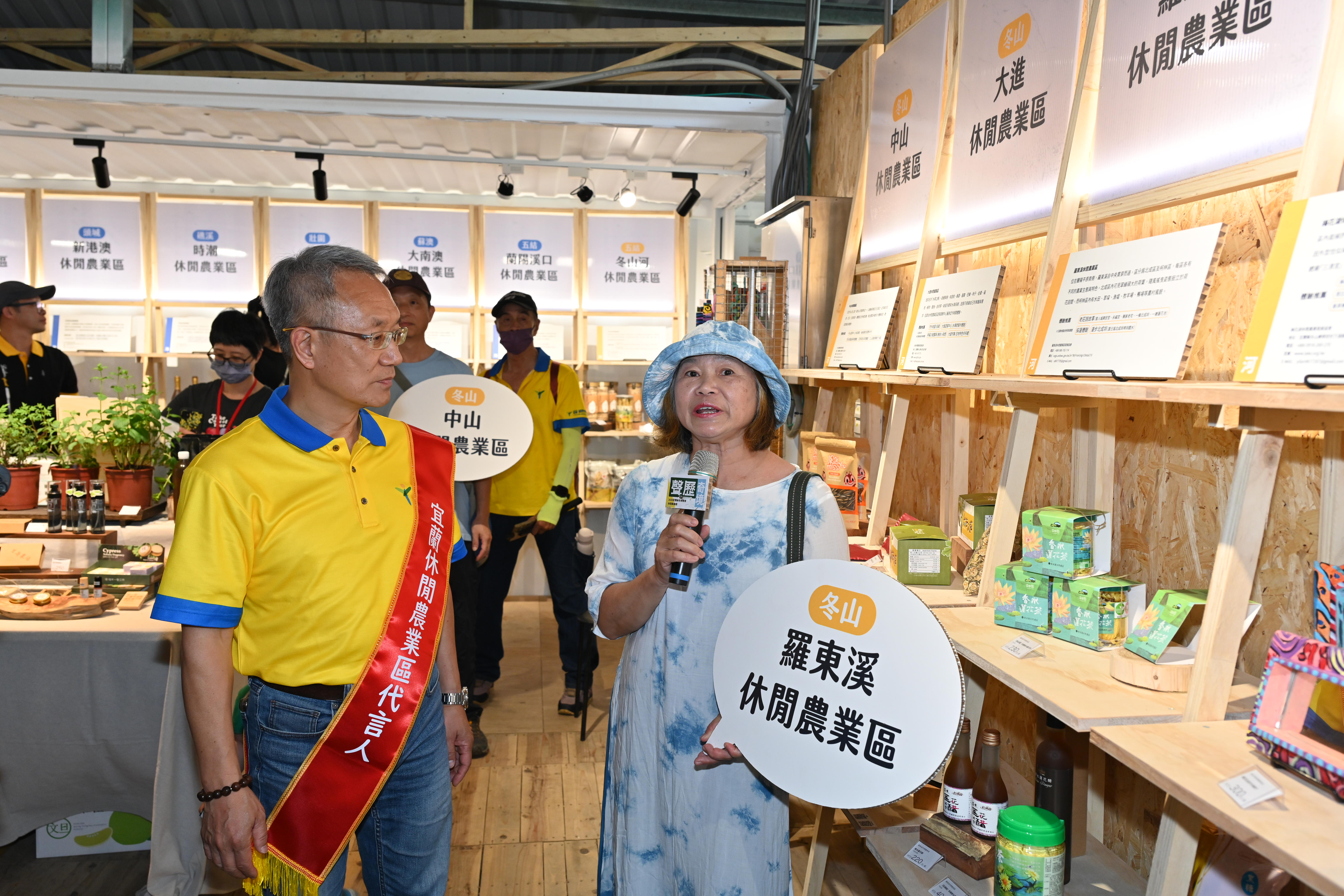 這裡展示了宜蘭17處休閒農業區特色產品,各個休區的夥伴聯手休區代言人宜蘭代理縣長林茂盛,共同推廣休區好物,像是:紅柴林休區的海味烏龍、中山休區的茶酒粕面膜、新南休區的哈密瓜醬瓜…等等多樣獨具特色的商品,每位來到綠博的遊客,別忘了在「聲味市集」帶走一份嚴選伴手禮,讓宜蘭的土地香氣在舌尖延續。