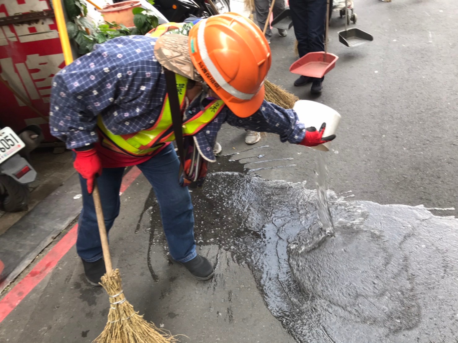 清潔人員進行環境清掃並清除積水容器