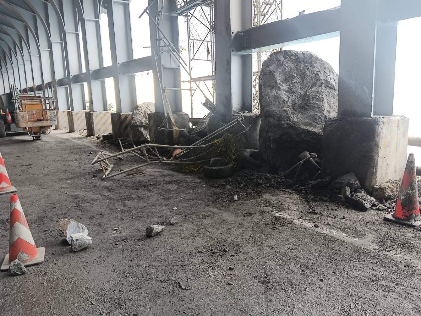 蘇花公路台9線159.4公里大清水路段昨(25)日深夜發生嚴重落石坍方,一顆直徑近3公尺的巨石自約250公尺高的邊坡崩落,強大衝擊力直接砸中正在進行修復工程的鋼構明隧道,導致頂板嚴重受損。公路局東區養護工程分局南澳工務段獲報後立即動員搶修團隊,於今(26)日凌晨2時20分搶通並開放通行。
