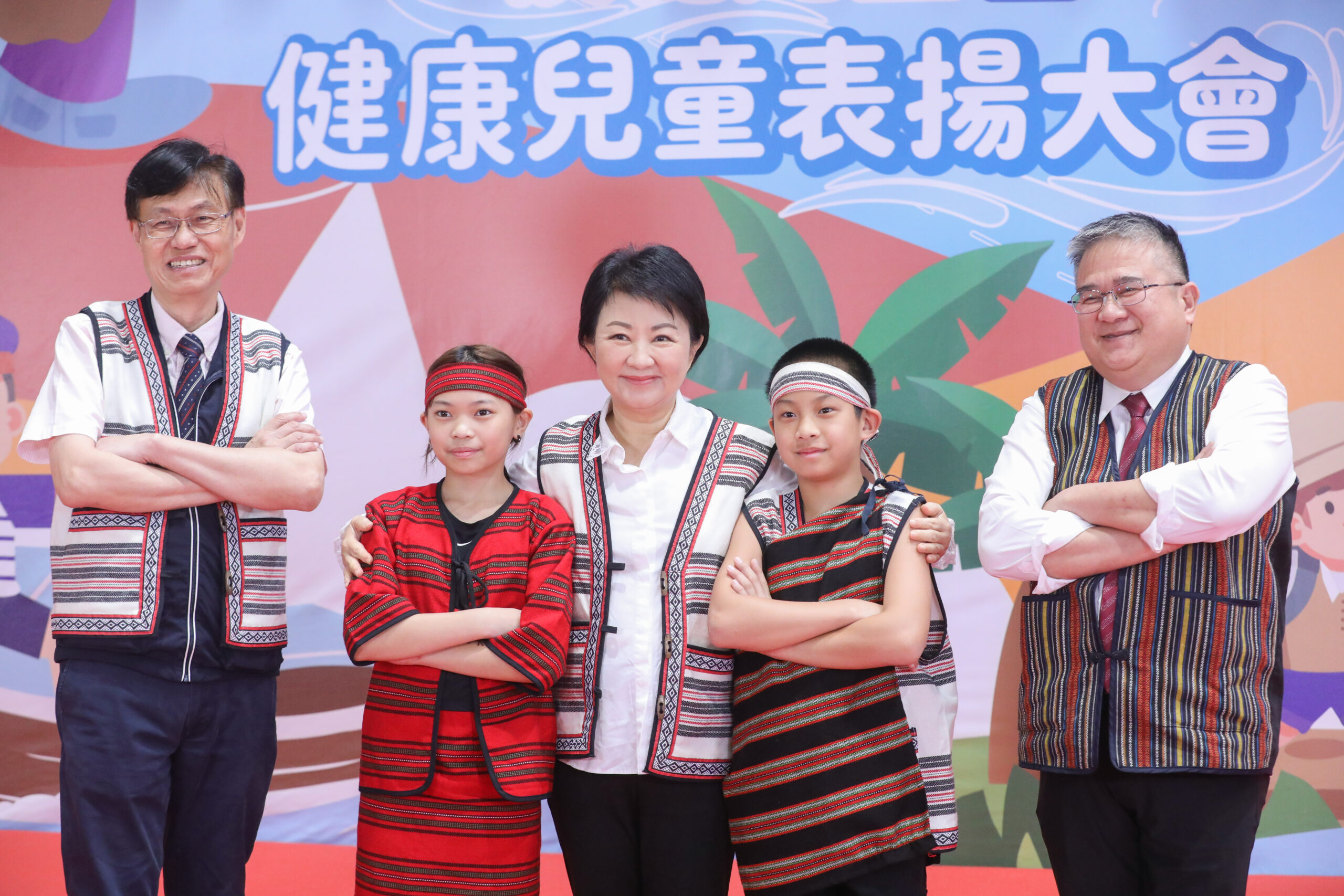 盧市長表揚1,300名模範暨健康兒童 可愛Pose配合擺拍、溫馨獻上「市長抱抱」鼓勵學子